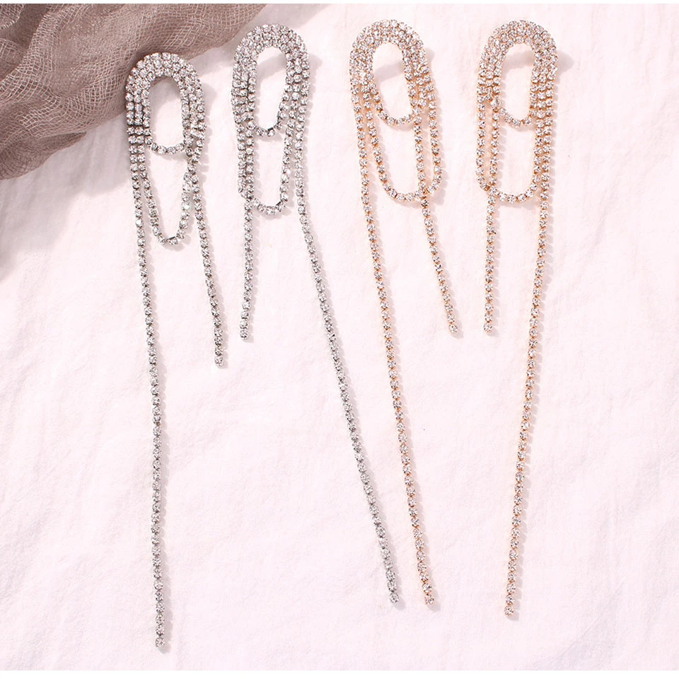 Женские длинные серьги-подвески Jouval, длинные серьги-подвески с кристаллами, ювелирные украшения для банкета, женские серьги с кисточками