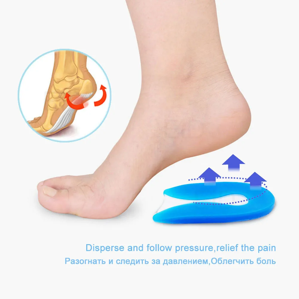 100% силиконовый гель для пальцев ног, накладки для облегчения боли при U-Shape форме, благодаря чему создается ощущение невесомости с дугой от подошвенного фасцита Каблук Протектор пяточная шпора Подушка стельки для обуви стельки для мужчин и женщин
