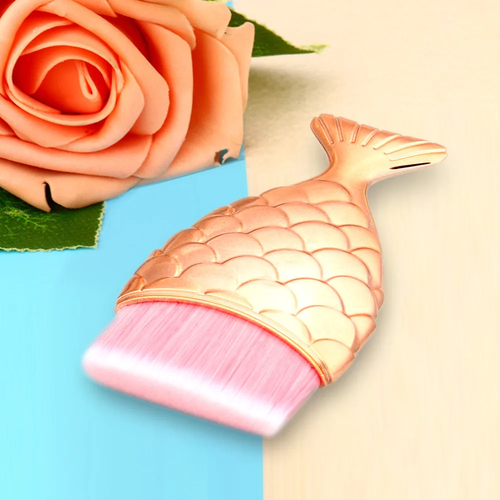 Плоская головка розового золота рыбий хвост Кисть для макияжа Косметическая в виде рыбной чешуи румяна макияж Кисточки для макияжа & acessórios 05 *