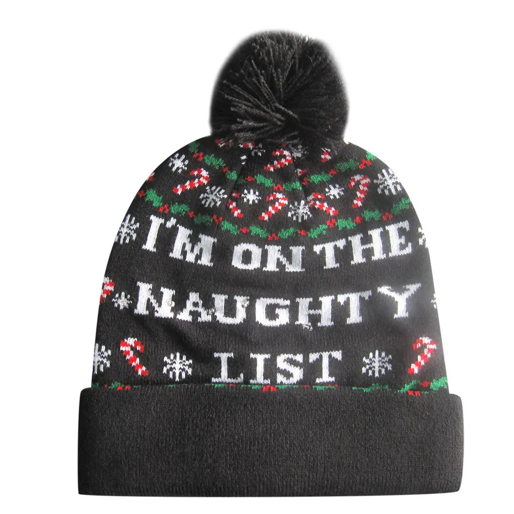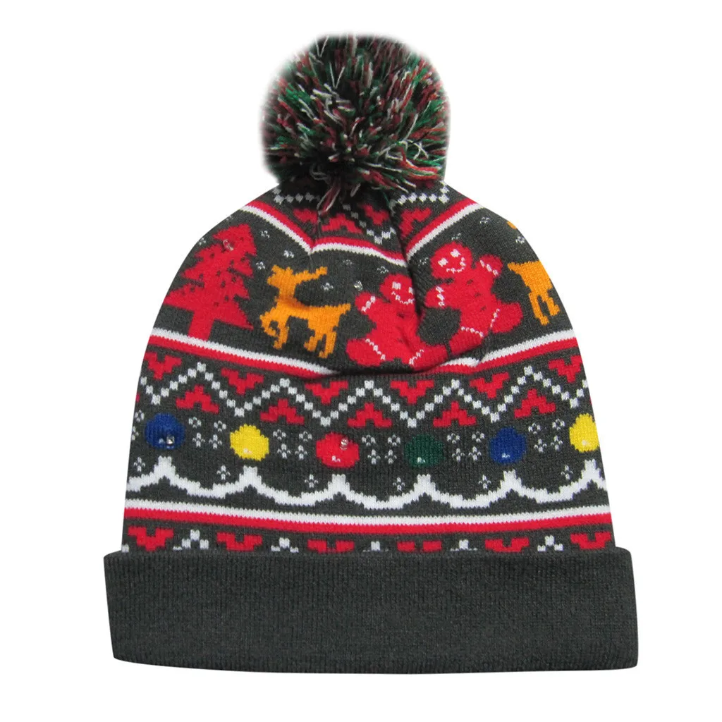 Красочные Счастливого Рождества светодиодный светильник вязанная шапка бини Hairball теплая шапка подарки
