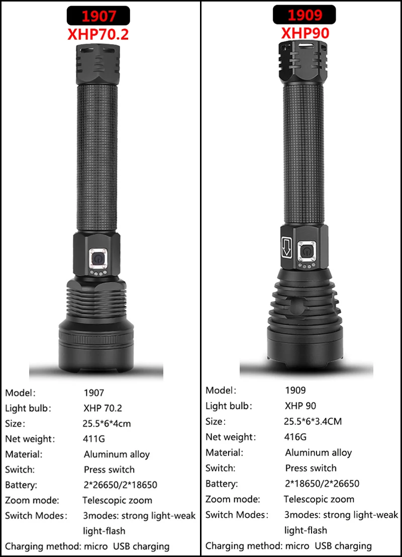 Мощный светодиодный фонарик с использованием лампы XHP70.2/XHP90 светодиодный
