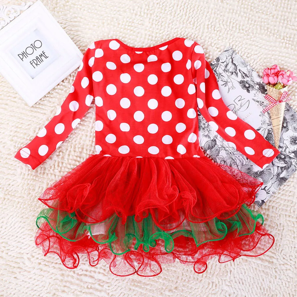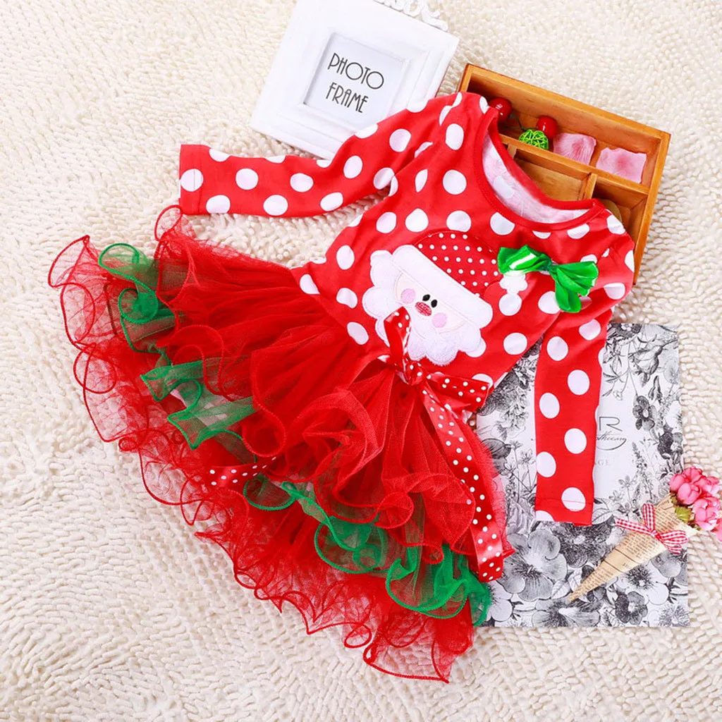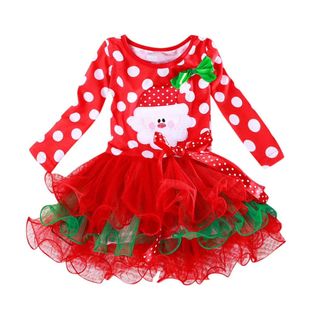Toddler Baby Girls Long Sleeve Christmas Santa Dot Print Tulle Dress Outfits