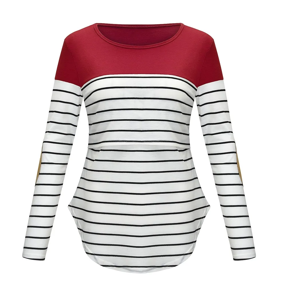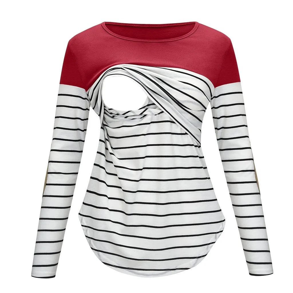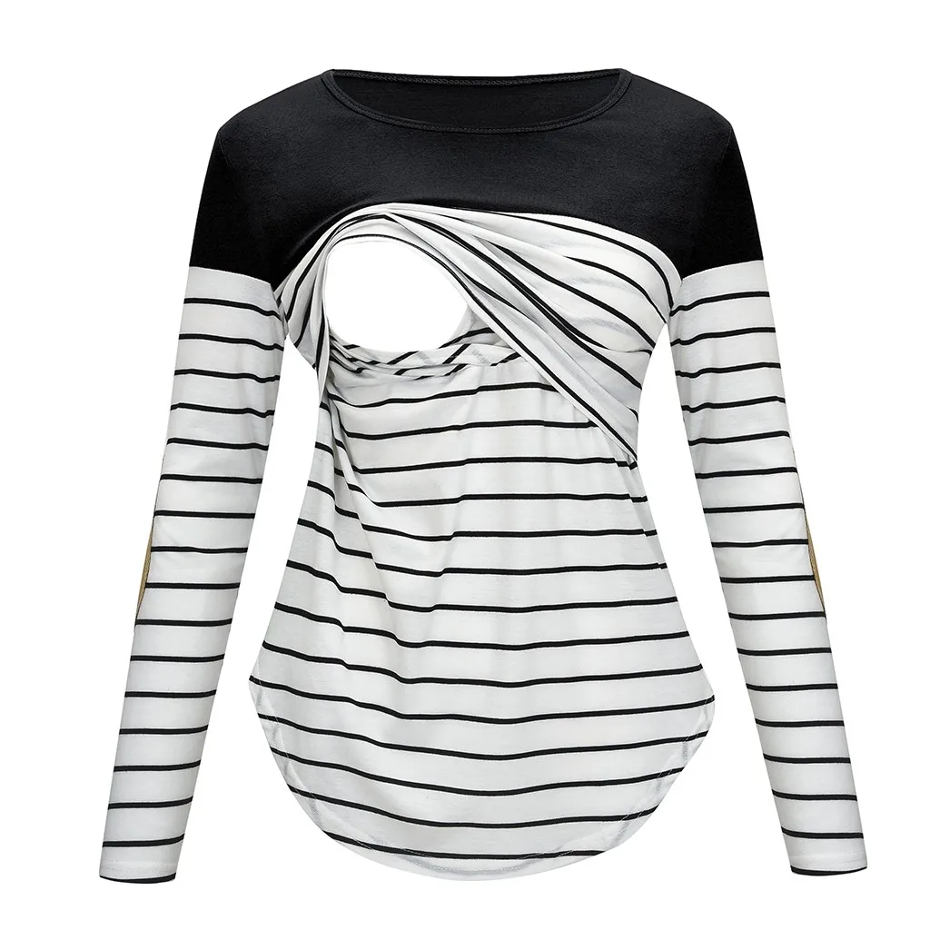 Women Maternity Long Sleeve Striped Nursing Tops T-shirt For Breastfeeding