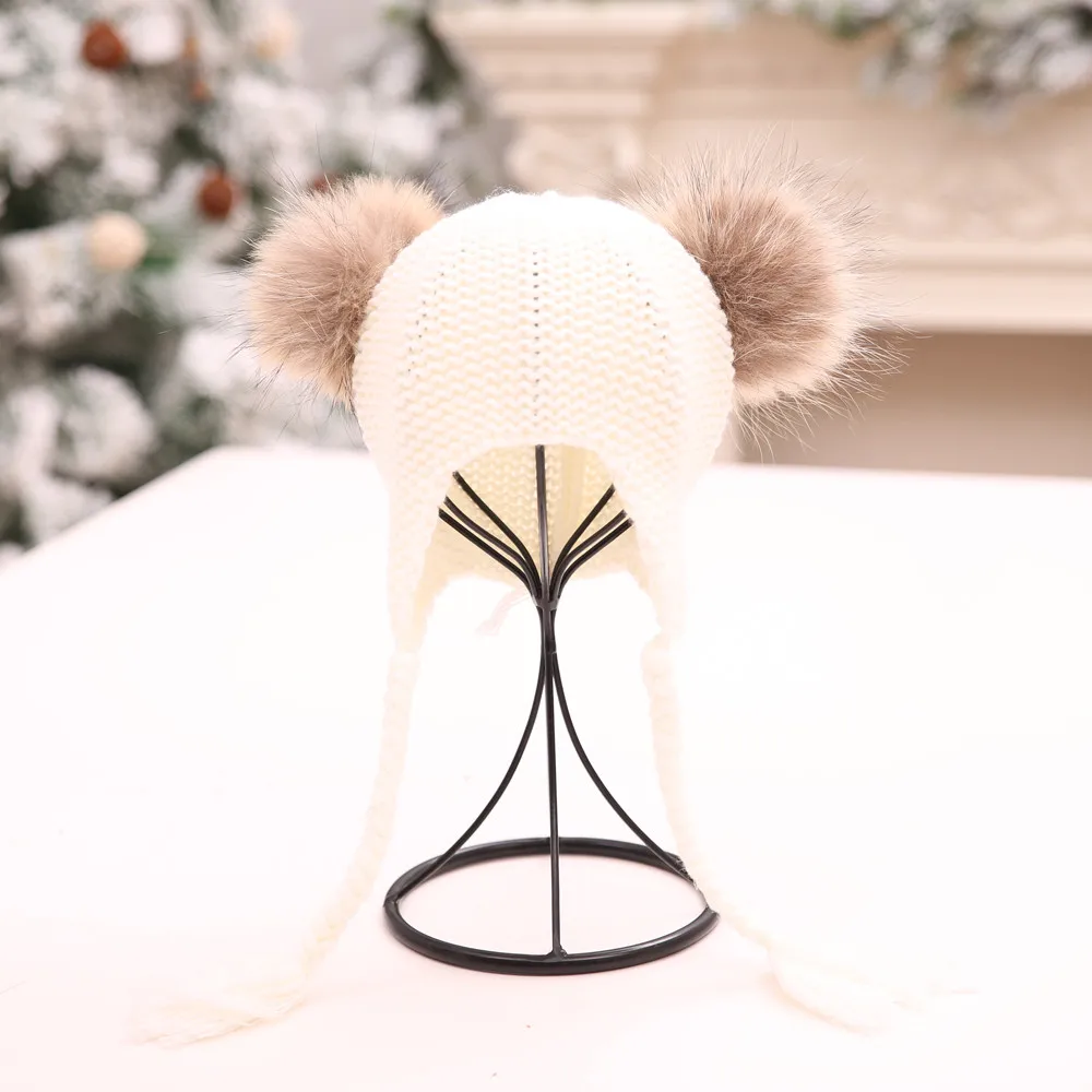 Детская зимняя шапка шапочка с помпоном шапка бини шапка-собачка כבзимние зимние вязаные шапки Hairball оплетка наушники Толстая теплая шапка # H