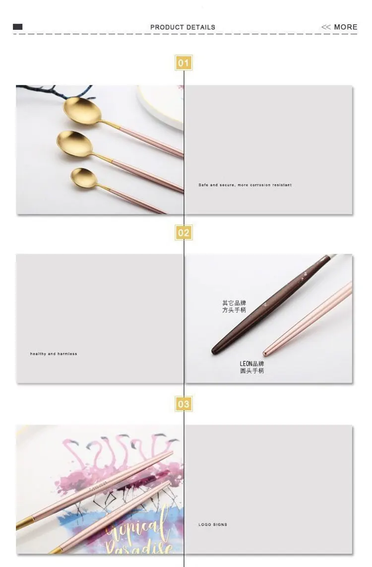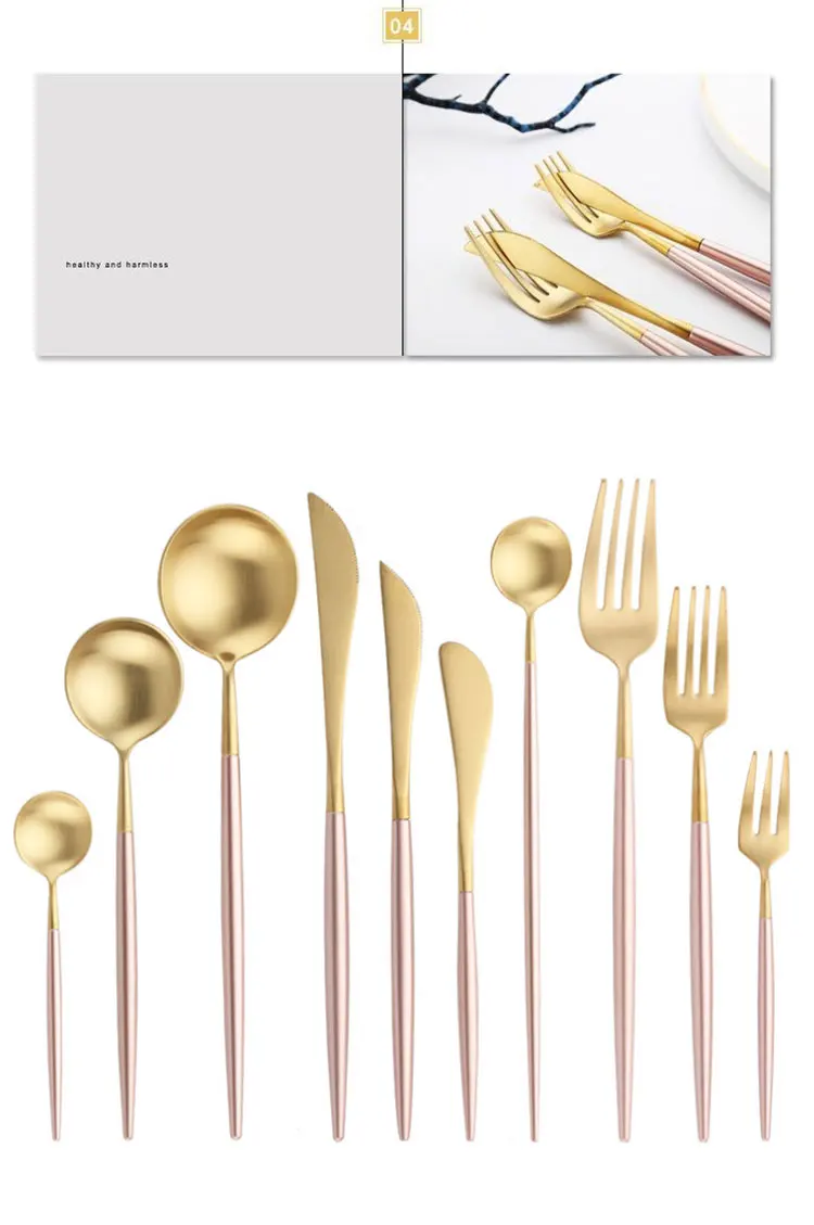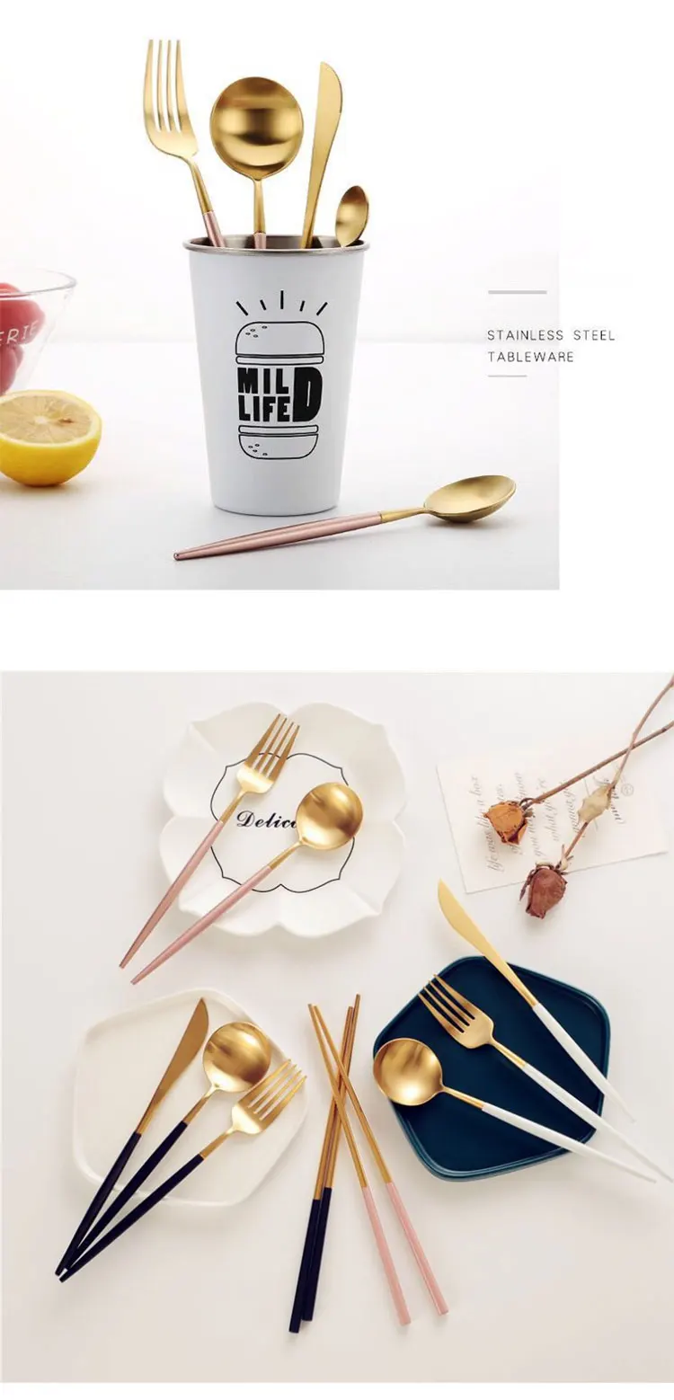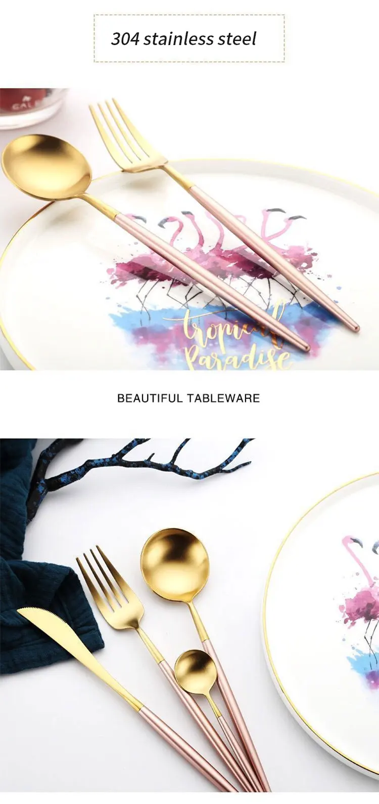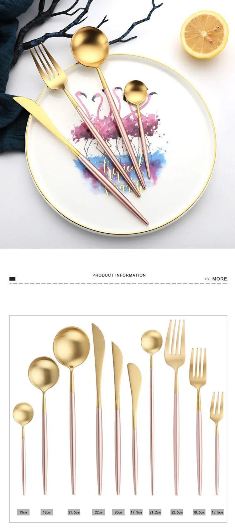 Cuberteria de oro 304 cuchillo de acero inoxidable cuchara de Caffee juego de tenedor de cucharas juego de vajilla de cocina de comida coreana