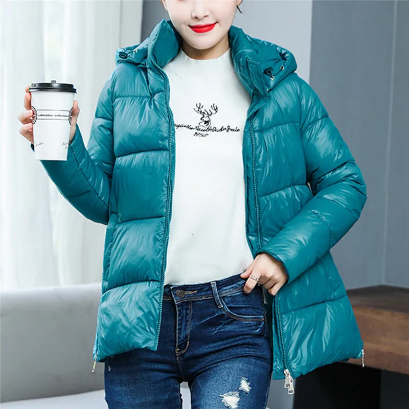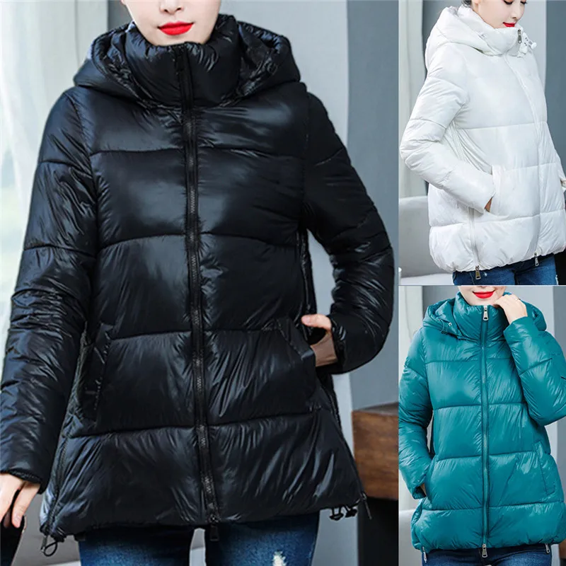 Модная женская зимняя теплая хлопковая куртка с капюшоном, однотонное пальто с длинными рукавами