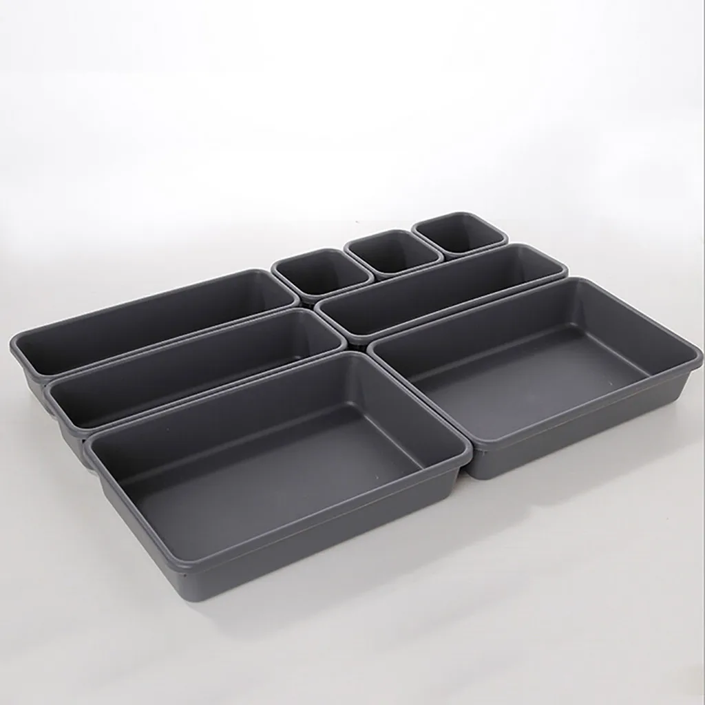 Попрощайтесь с громоздкостью и пустым пространством с этим мусорным ящиком-органайзером-стойким решением для хранения. Независимо от того, где вы используете этот набор из 8 прочных органайзеров и ящиков для хранения на кухне, ванной, косметическом макияже или в офисе Этот многоцелевой органайзер для ящика стола делает ваши вещи неглубокими. Вы можете свободно смешивать и сочетать их, чтобы увеличить объем хранения в ваших ящиках, чтобы соответствовать различным потребностям дома и офиса. Смешайте и Сочетайте узкие разделители для органайзеров для индивидуального модульного хранения. Изготовленные из прочного пластика, эти мелкие разделители ящиков могут быть использованы вместе или отдельно, и изменены, чтобы соответствовать точным размерам вашего ящика. Органайзер для туалетного ящика позволяет максимально увеличить количество неиспользованных мест в домашних помещениях, в том числе; Шкафы, Прачечная, офис и другие жилые помещения. Организуйте офис, ванную комнату, туалетный столик и выдвижные ящики. Наши маленькие ящики-органайзеры предназначены для ванной комнаты, кухни, гардеробной, прачечной, косметики и многого другого. Разделители выдвижных ящиков предназначены для хранения различных размеров предметов, чтобы помочь людям организовать свои дома и жизнь! Потому что когда все находится на своем месте, ваши утренние процедуры проходят гладко, и ваш день начинается лучше. Этот неглубокий органайзер для ящика стола сохранит ваши аксессуары аккуратными, аккуратными и организованными. Идеальные вставки ящика для органайзер для ящика с косметикой, органайзер для ящика для ванной комнаты, органайзер для офисных ящиков, разделители ящиков для ванной комнаты идеально подходят для ванной комнаты, офисной продукции, косметики или туалетного столика для организации аксессуаров для волос или школьных принадлежностей. Размер (см): прибл. Большой: 23,5x16x4,5 см; Внутренний слой: 23,5x7,5x4,5 см; Маленький размер: 7.5x7.5x4.5cm Материал: ppПосылка включает в себя:
