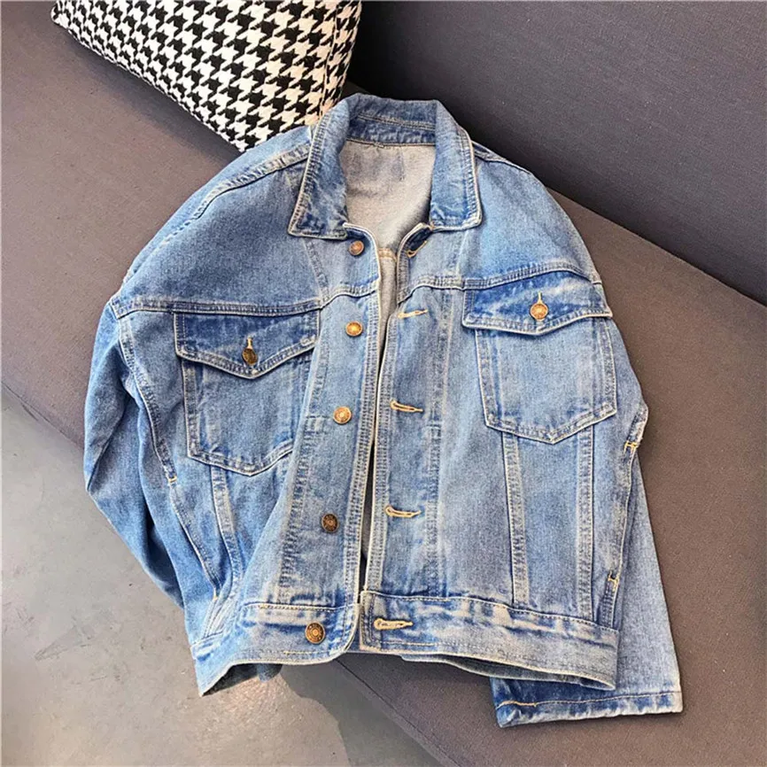 Женская Осенняя зимняя джинсовая куртка, винтажное свободное джинсовое пальто с длинным рукавом