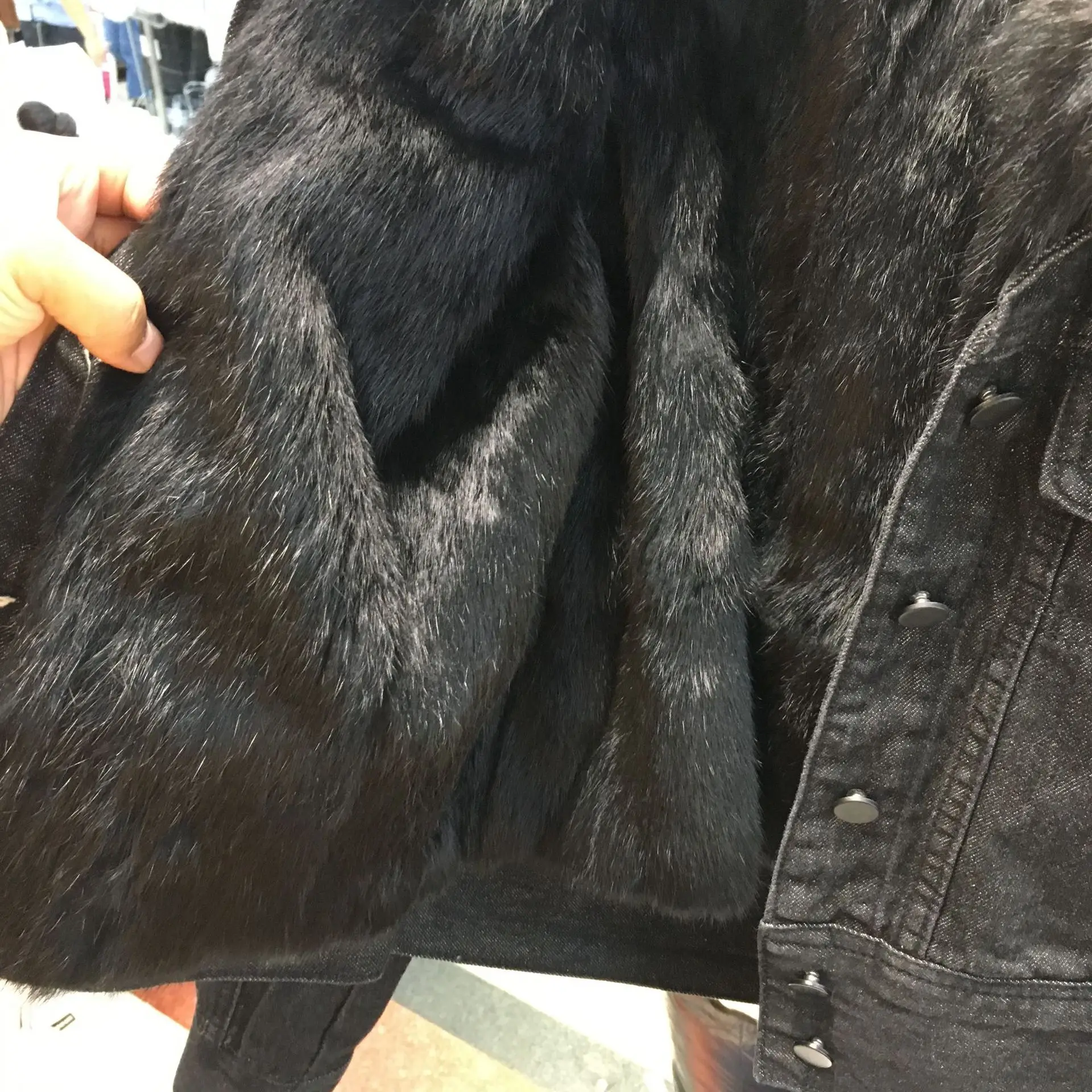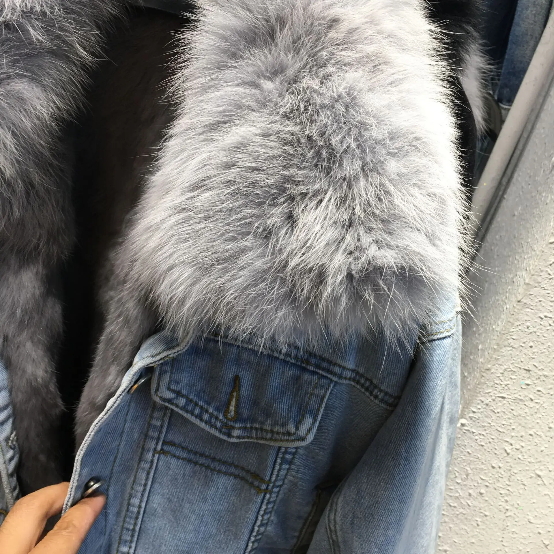 Воротник из натурального Лисьего меха + подкладка из натурального кроличьего меха Деним с мехом пальто Модный и теплый