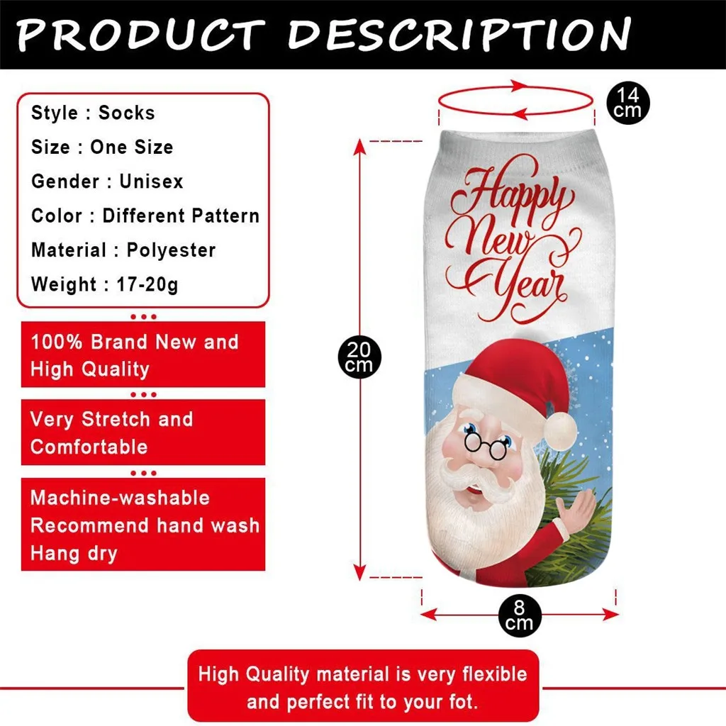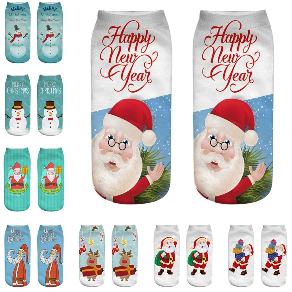 Повседневные деловые носки, 3D рождественские носки с Санта-Клаусом и оленем, средние спортивные носки с принтом