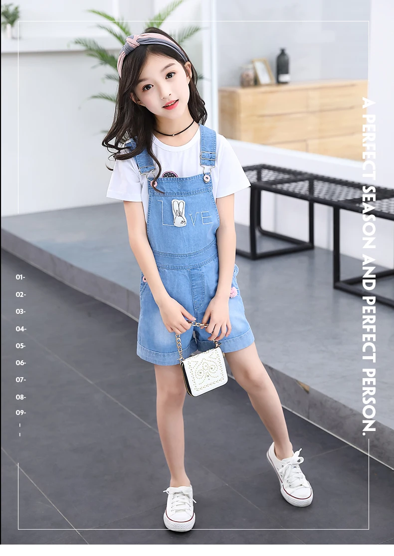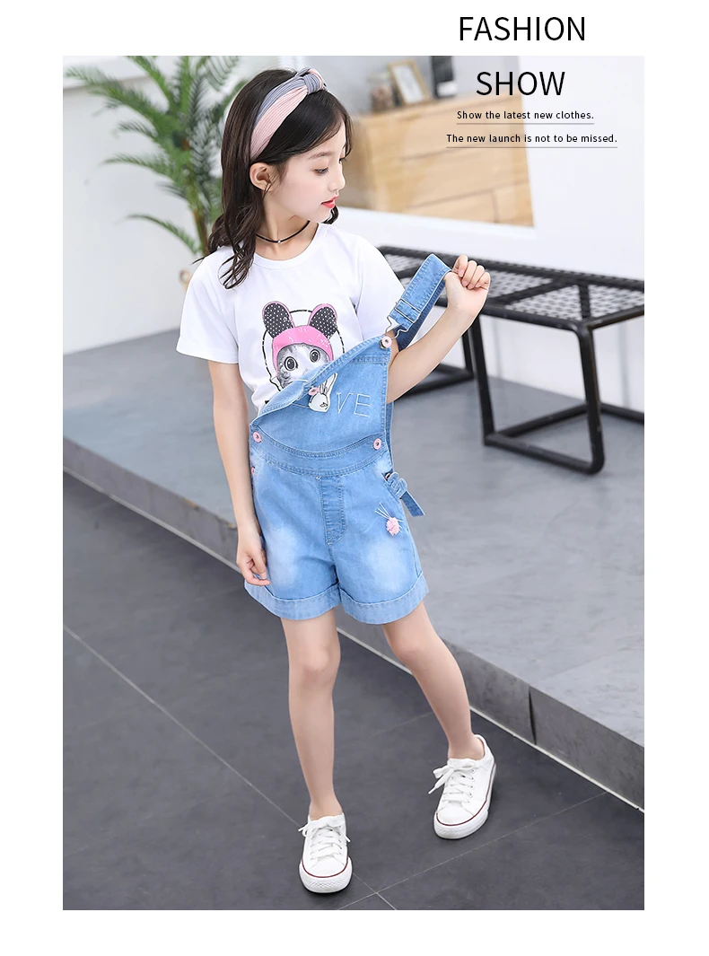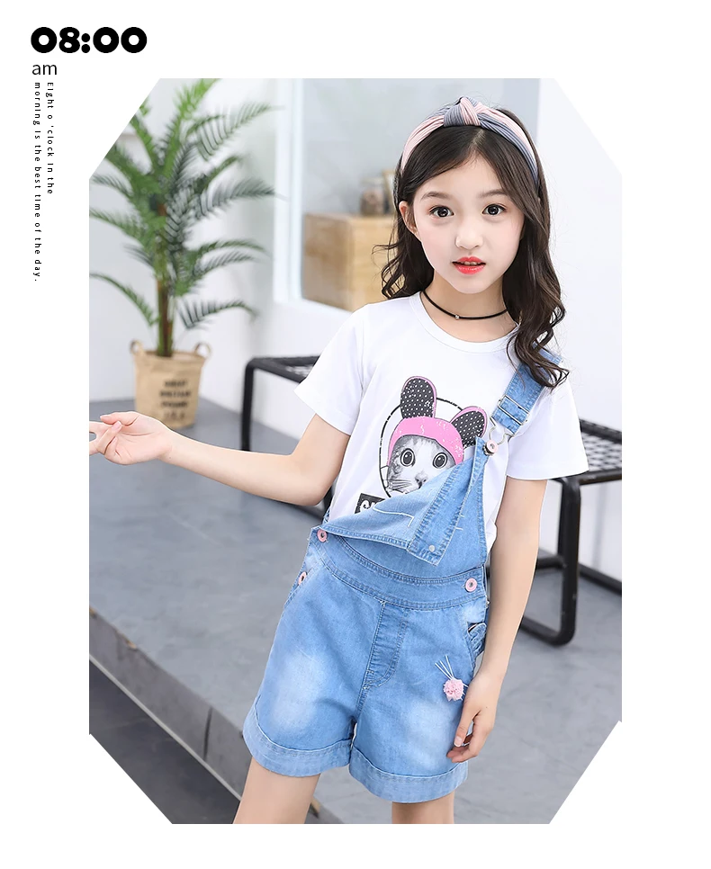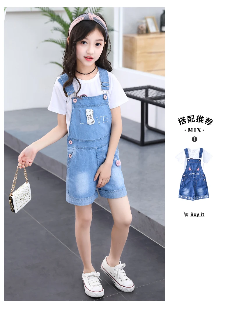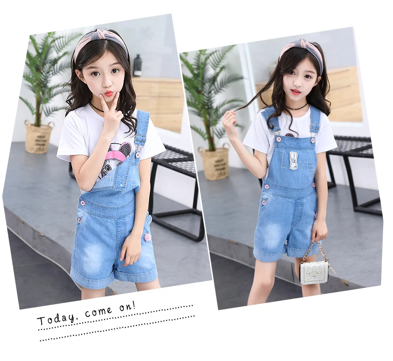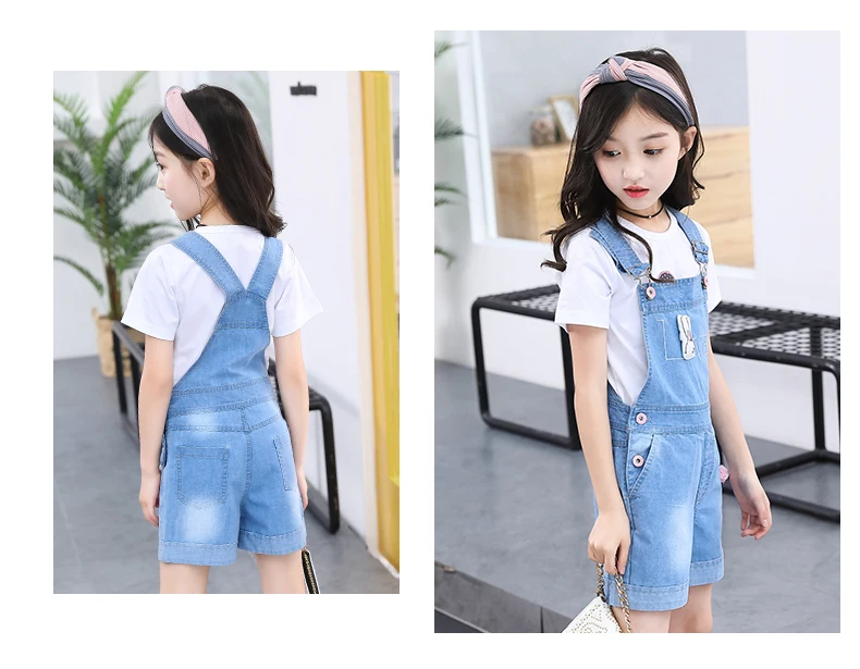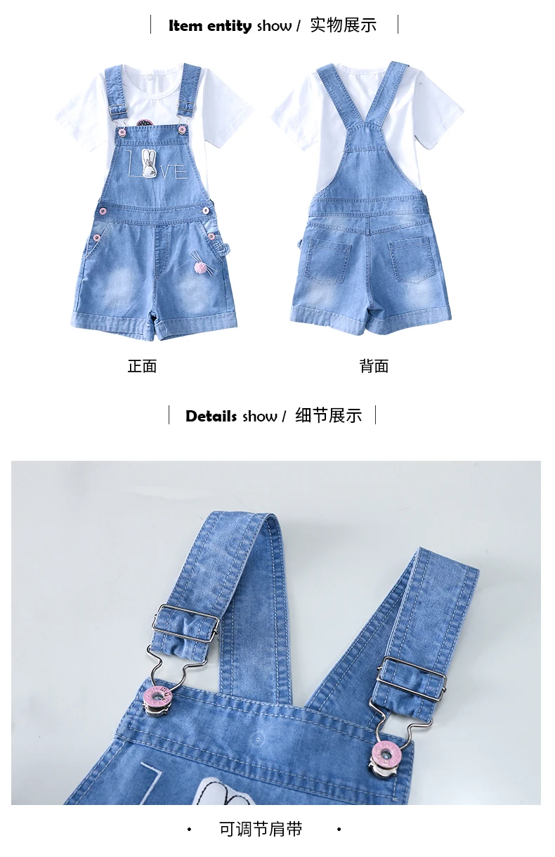 Джинсовый комбинезон для маленьких и больших детей, джинсовый комбинезон, джинсы-бойфренды, джинсовый комбинезон, шорты синего цвета (Купите джинсовый комбинезон, получите одну бесплатную футболку, как показано на рисунке)