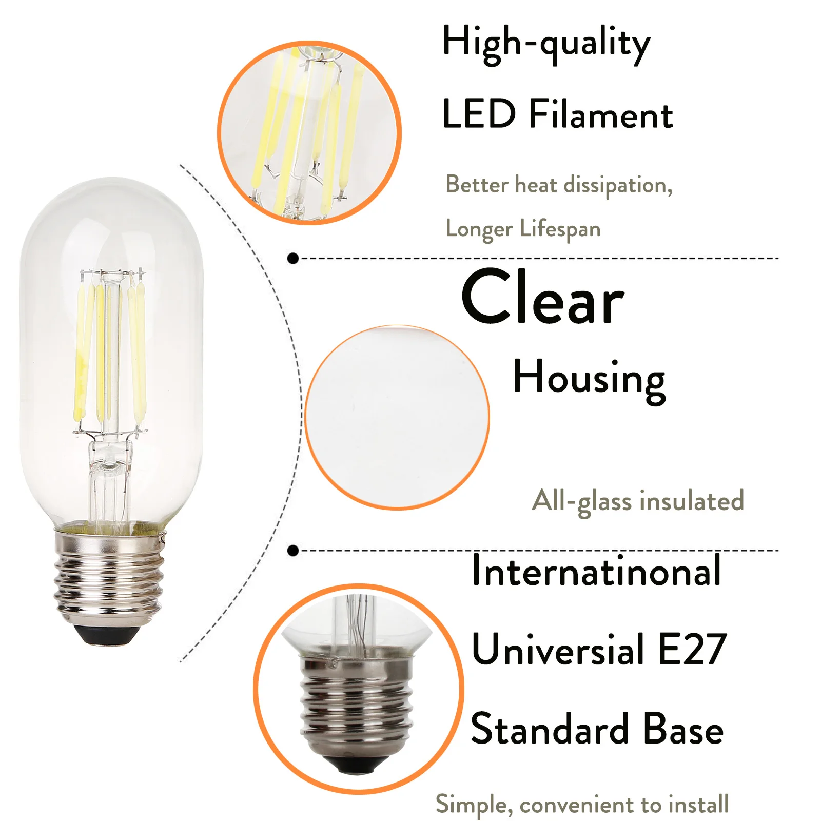 T45 6W Vintage LED Filament Light Bulb Retro Light Bulbs Edison E27 Cool White 6000K 45W Halogen Equivalent 220V Class Cover