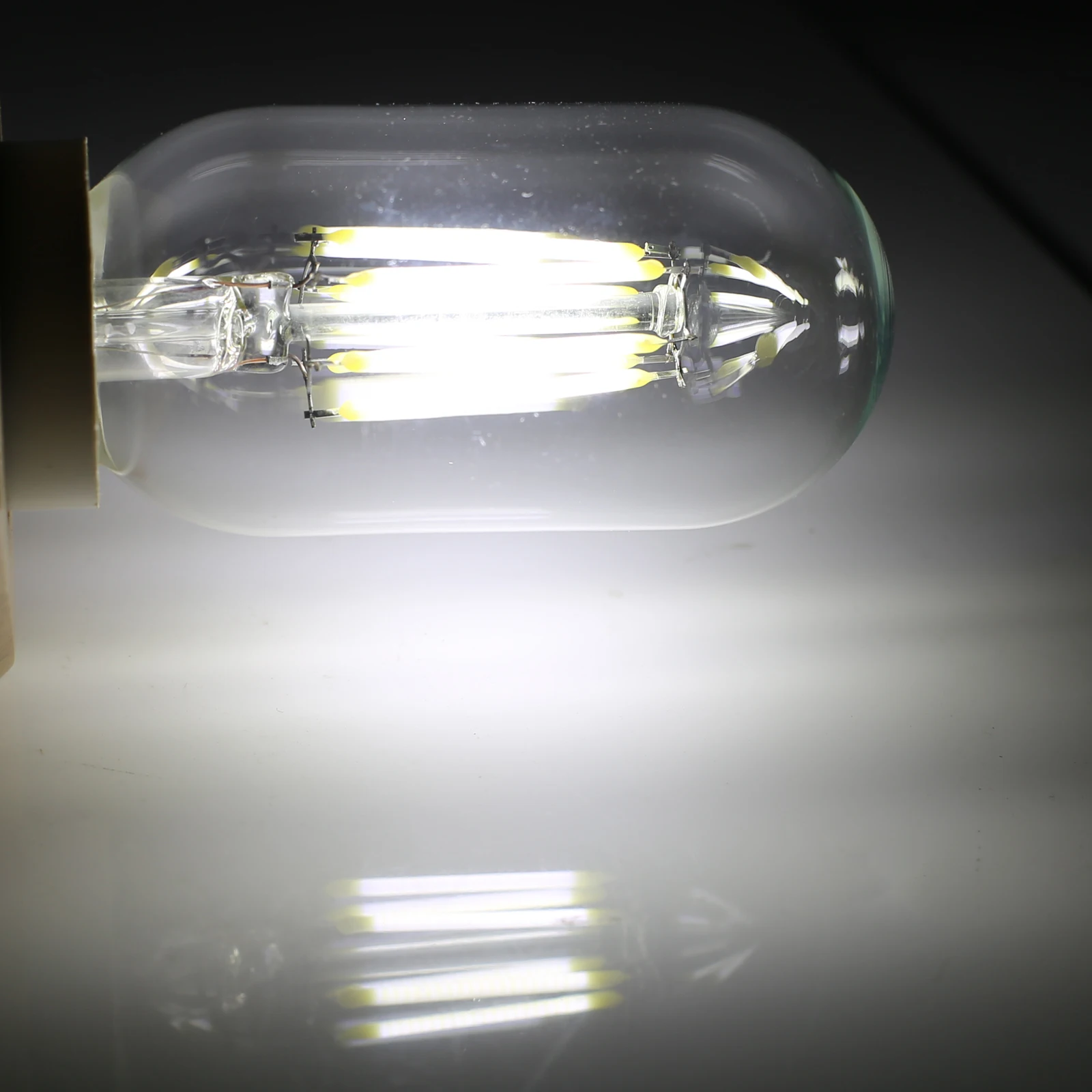 Item type: Vintage Tubular LED Filament Light Bulb T45 Cover Color: Clear Base Type: E27 Cover Material: Glass Voltage: AC 220-240V Wattage: 6W Luminous: 400-450 Lm Power Consumption: 45W Halogen lamp Equivalent Size(D*H): 45*110mm / 1.77*4.33 inch Working Frequency: 50/60HZ Dimmable or Not: Not Dimmable Working Temperature: -20~50 °C Light Color: Cool White Temperature: 6000K Life span: 50000 hours Beam Angle: 360°