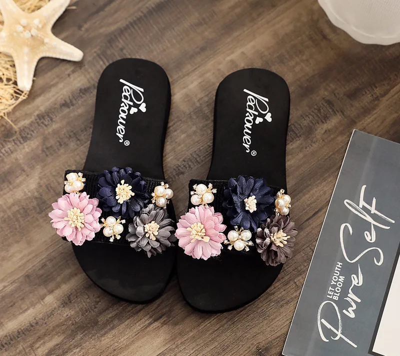 Новинка; Детская обувь; Нескользящие Вьетнамки; Модная пляжная обувь для девочек; Сандалии принцессы; Женские летние шлепанцы с цветами; Женская обувь; s638