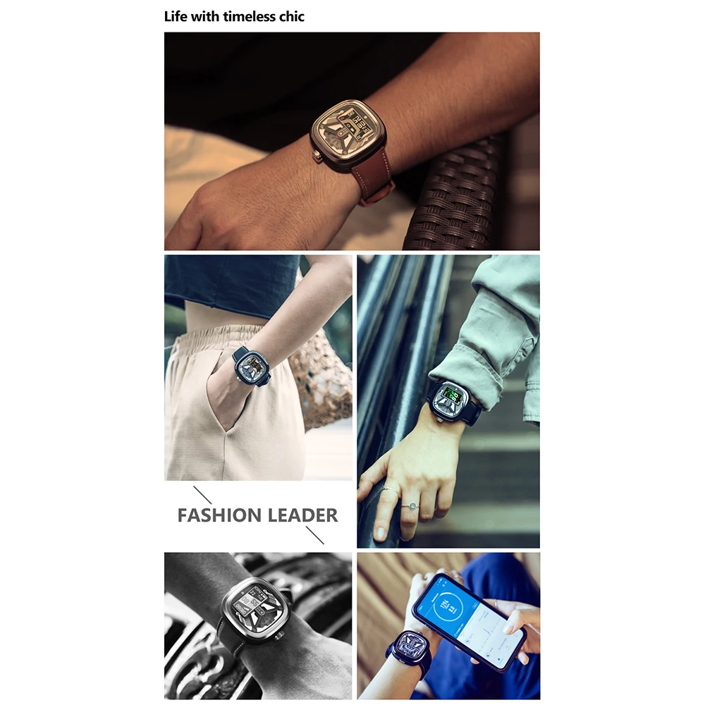 [Уникальный дизайн циферблата]:Есть два индивидуальных циферблата, один указывает на часы, другие минуты. Оснащен 3Д многоуровневые интерфейсом.