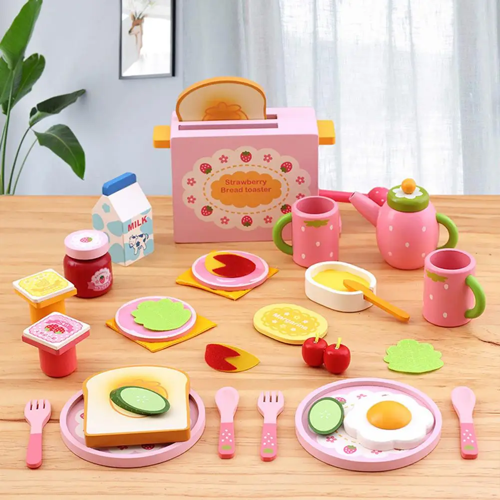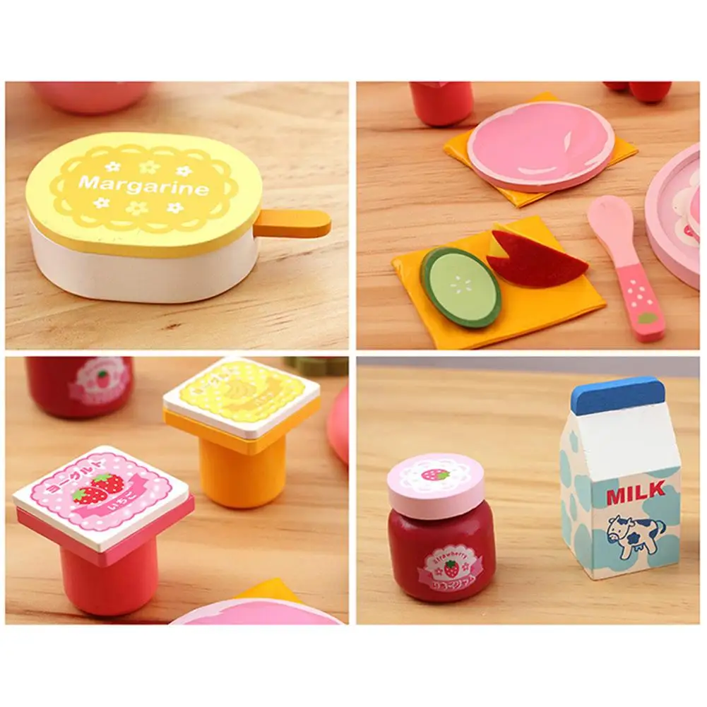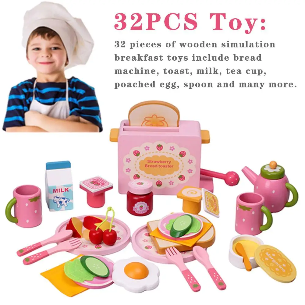 1. 32шт игрушки: 32 штуки деревянного моделирования игрушечный завтрак включает в себя хлебную машину, тост, молоко, чайную чашку, яичко, ложку и многое другое.1 * набор игрушек