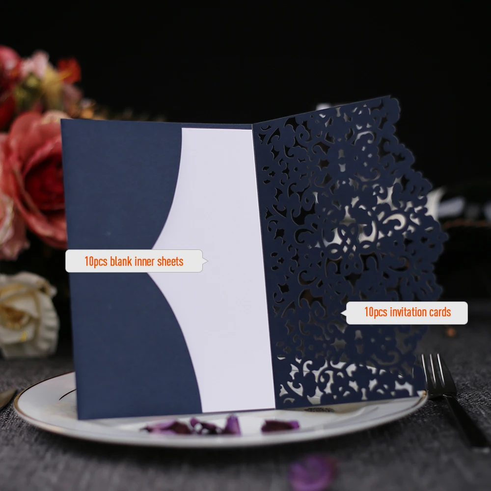 10/30/50 шт в наборе, сине-белые, элегантные, лазерная резка свадебные приглашения карты поздравительная открытка для свадьбы Юбилей День рождения расходные материалы