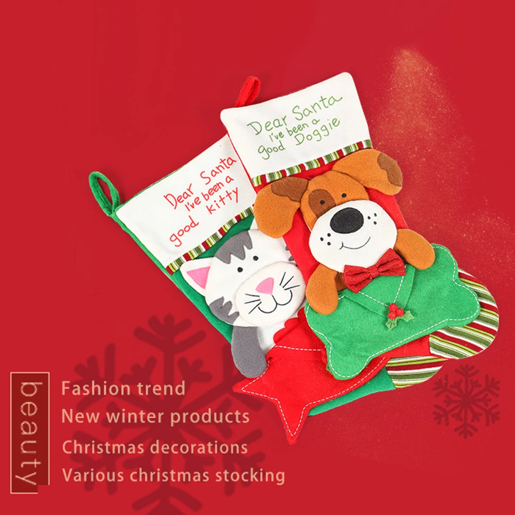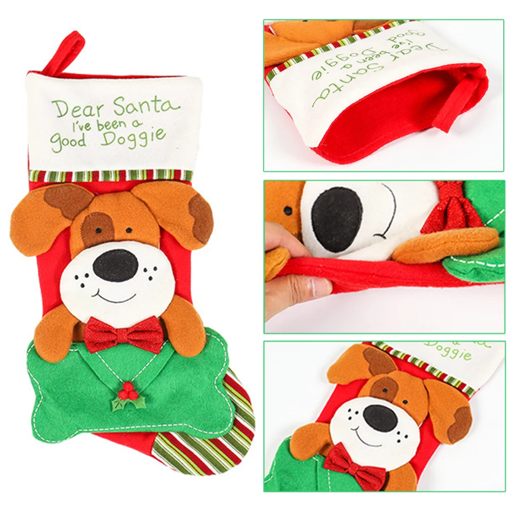 Милый дизайн чулок с объемным рисунком с петлей, подвешиваемый чулок идеально подходит для хранения лакомств, костей, игрушек, конфет и т. Д.