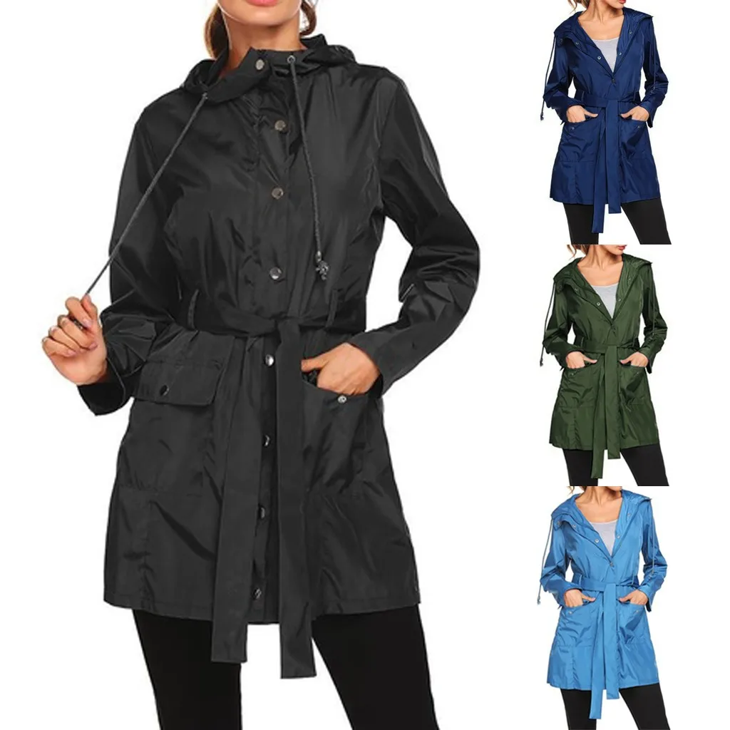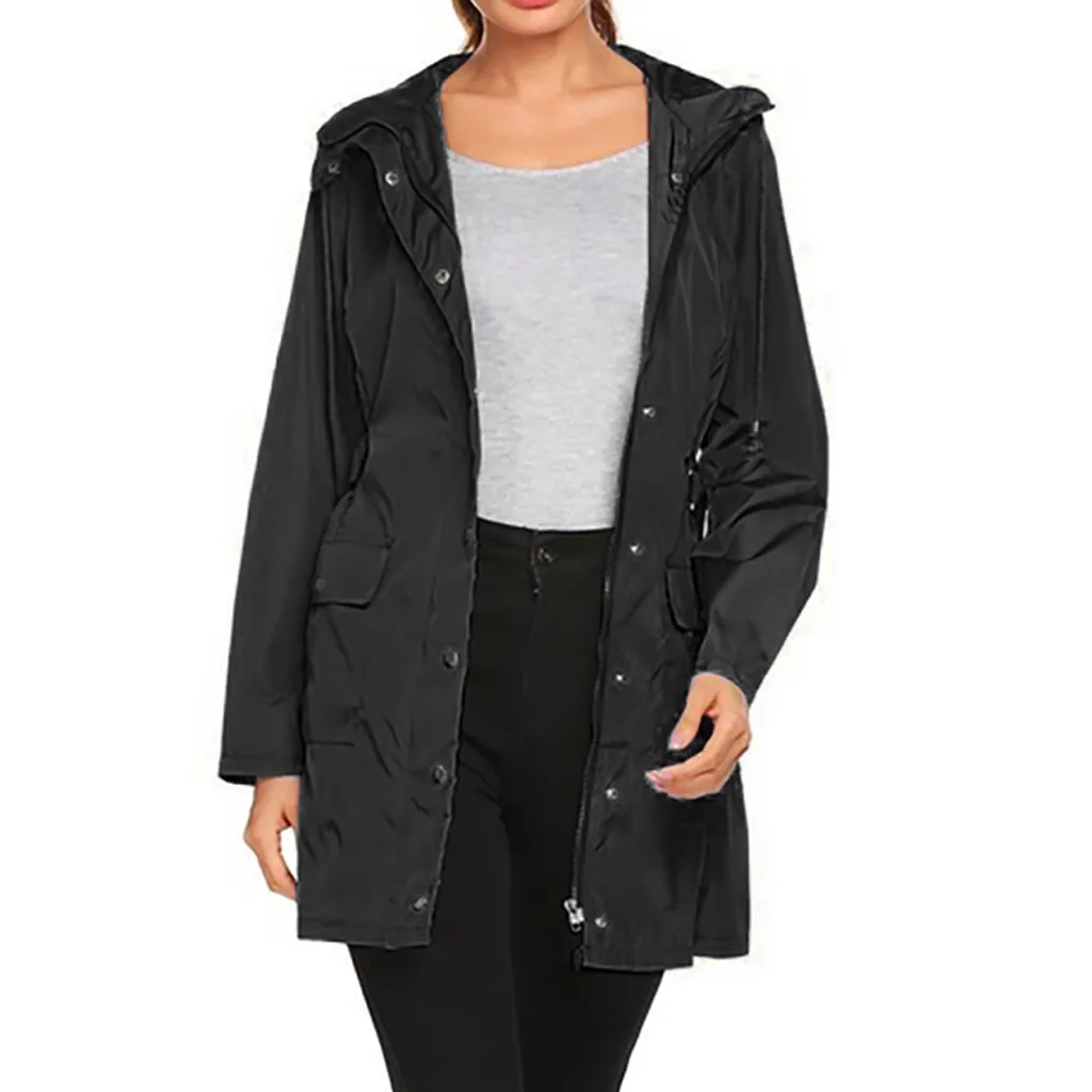 Размера плюс открытый Водонепроницаемый легкий дождевик с капюшоном плащ Для женщин пальто