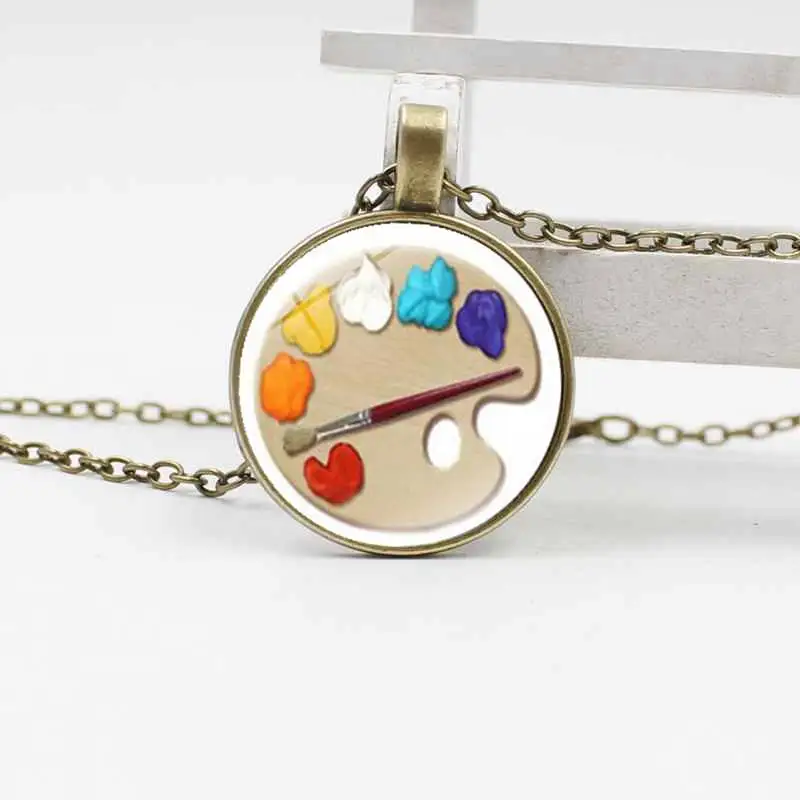 Модный гламурный палитра фото круглый стеклянный кулон ожерелье
