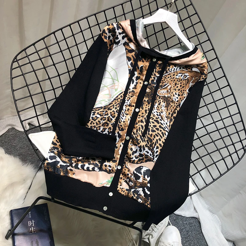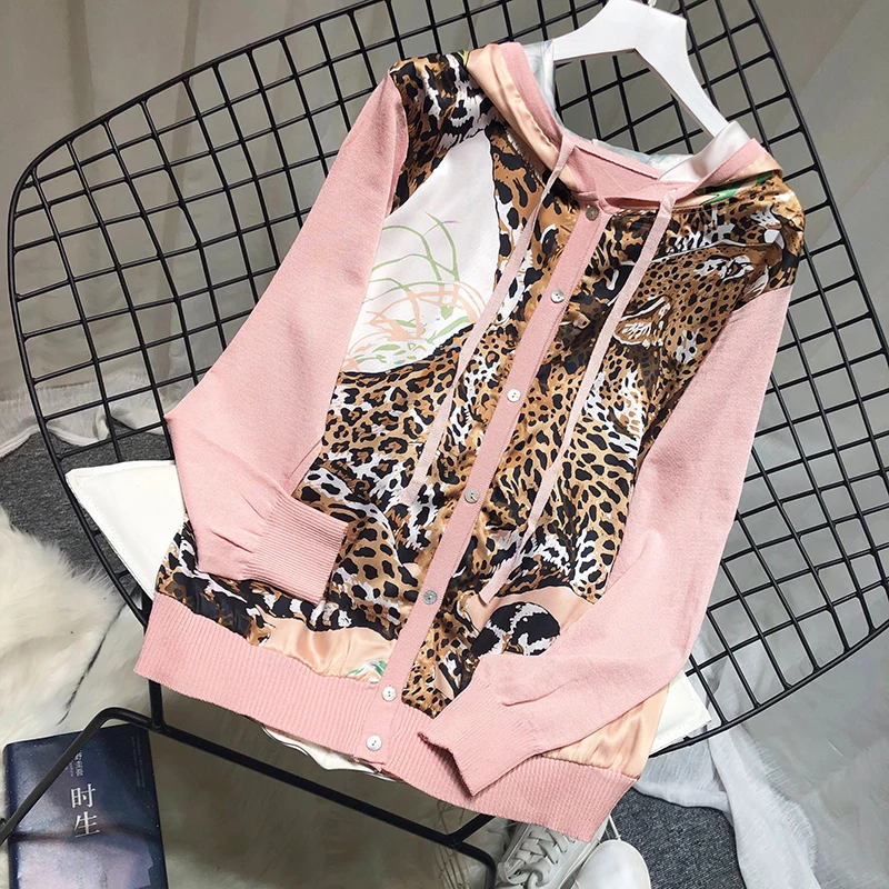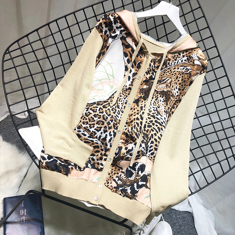 Женский свитер с принтом leapard, свитер с капюшоном, женский свитер, кардиганы для женщин