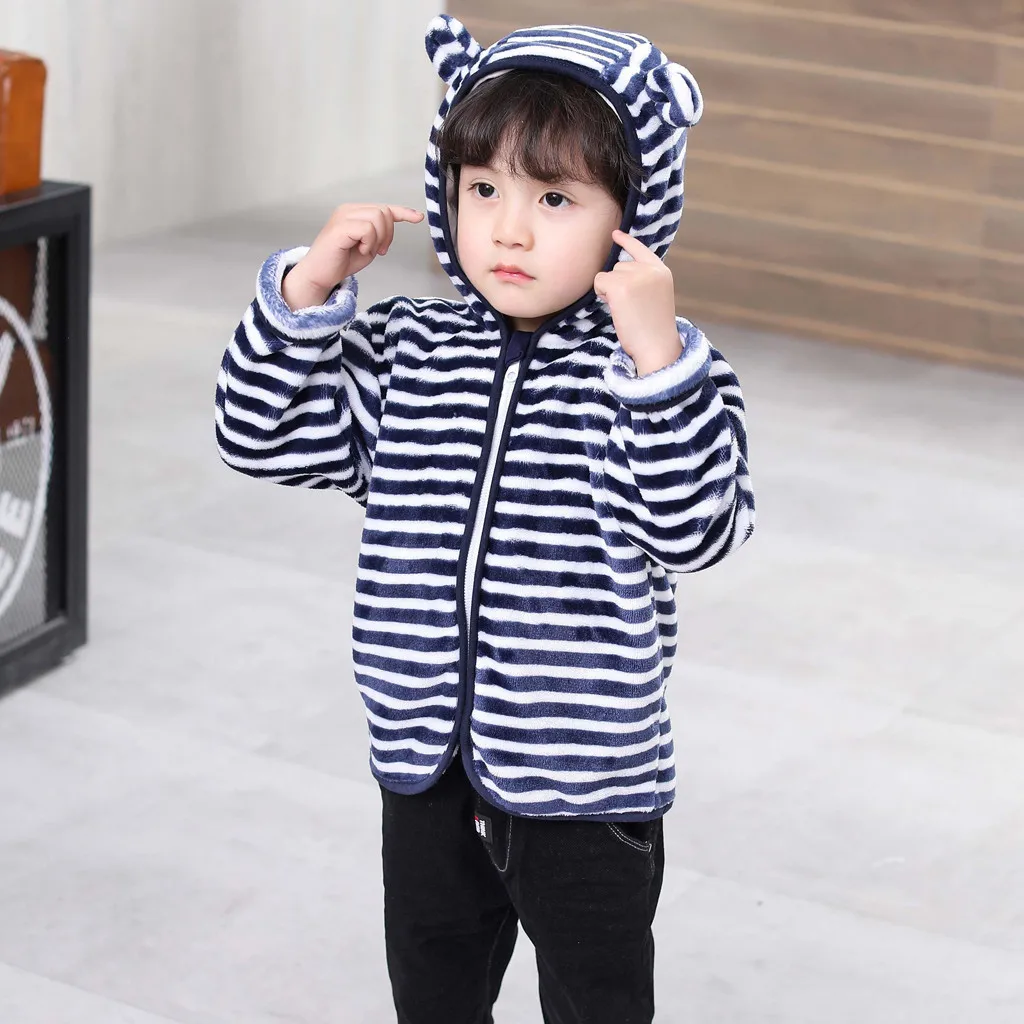 Теплое пальто с капюшоном и милыми ушками на молнии для маленьких девочек и мальчиков теплая верхняя одежда