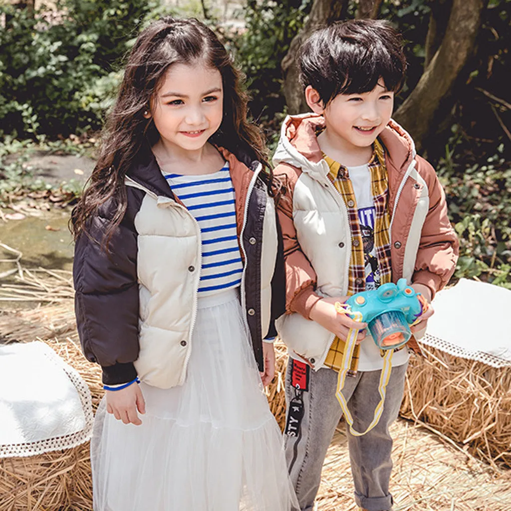 Зимнее ветрозащитное пальто на молнии для маленьких мальчиков и девочек теплая верхняя одежда с капюшоном, куртка