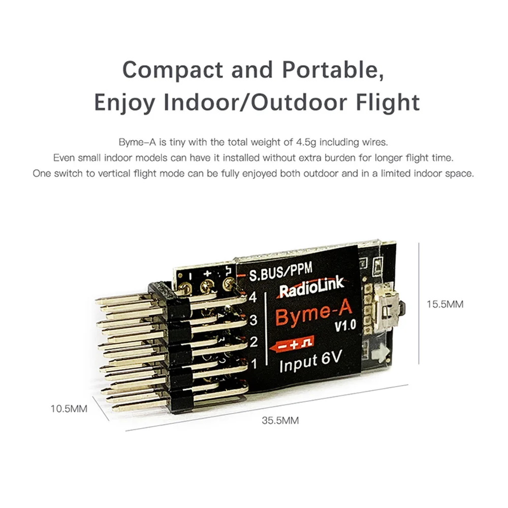 Компактный и Портативный: Byme-D является крошечный с общий вес 4,5 г в том числе проводов. Даже маленькие внутренние модели могут быть установлены без дополнительной нагрузки для более длительного времени полета.