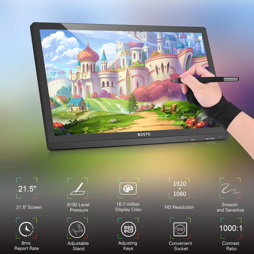 【Practical Accessories】:Поставляется с 20 наконечниками для ручек и удалителем, перчаткой, чтобы избежать размазывания экрана, салфеткой для чистки. Поставляется с диском 16G U с относительным программным обеспечением драйвера.