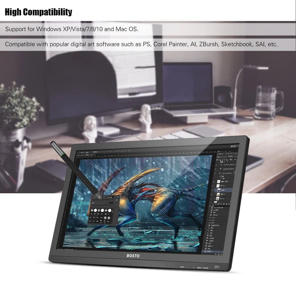 【Высокая Compatibility】:Поддержка Windows XP/Vista/7/8/10 и Mac OS, совместима с популярным цифровым программным обеспечением, таким как PS, Corel Painter, AI, ZBrush, Sketchbook, SAI и т. д. Широко применяется для иллюстрации и рисования, промышленного дизайна, веб-дизайна, живописи и т. д. Подходит для любого профессионального или любительского дизайна.