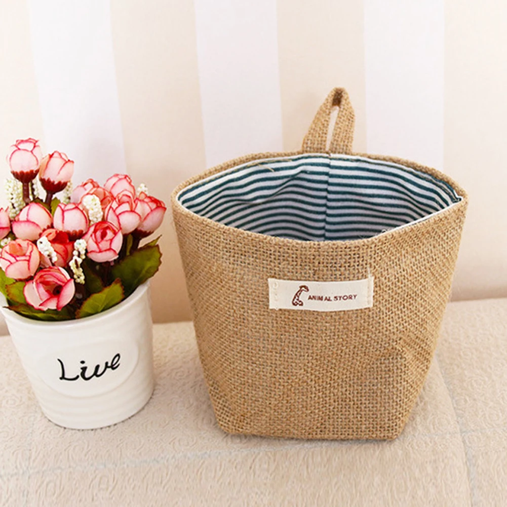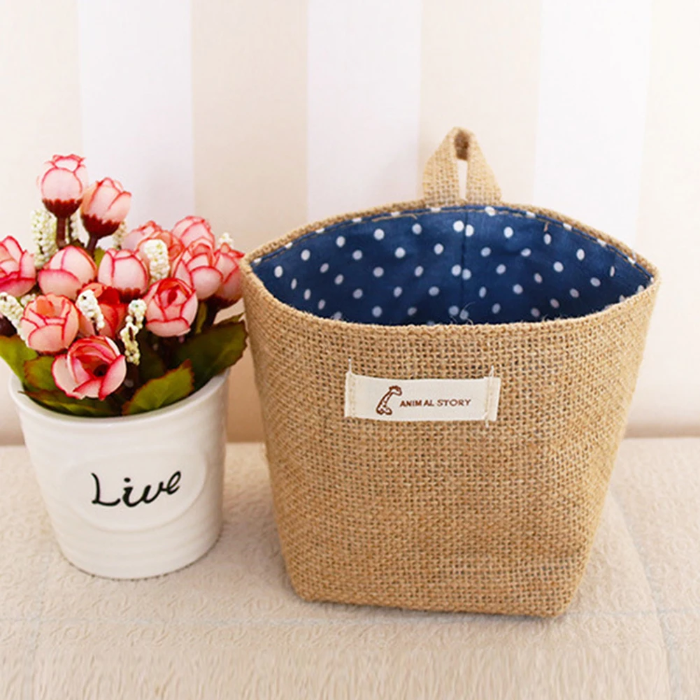Подвесная сумка с цветами для гаджетов для гостиной, сумка-Органайзер из хлопка и льна