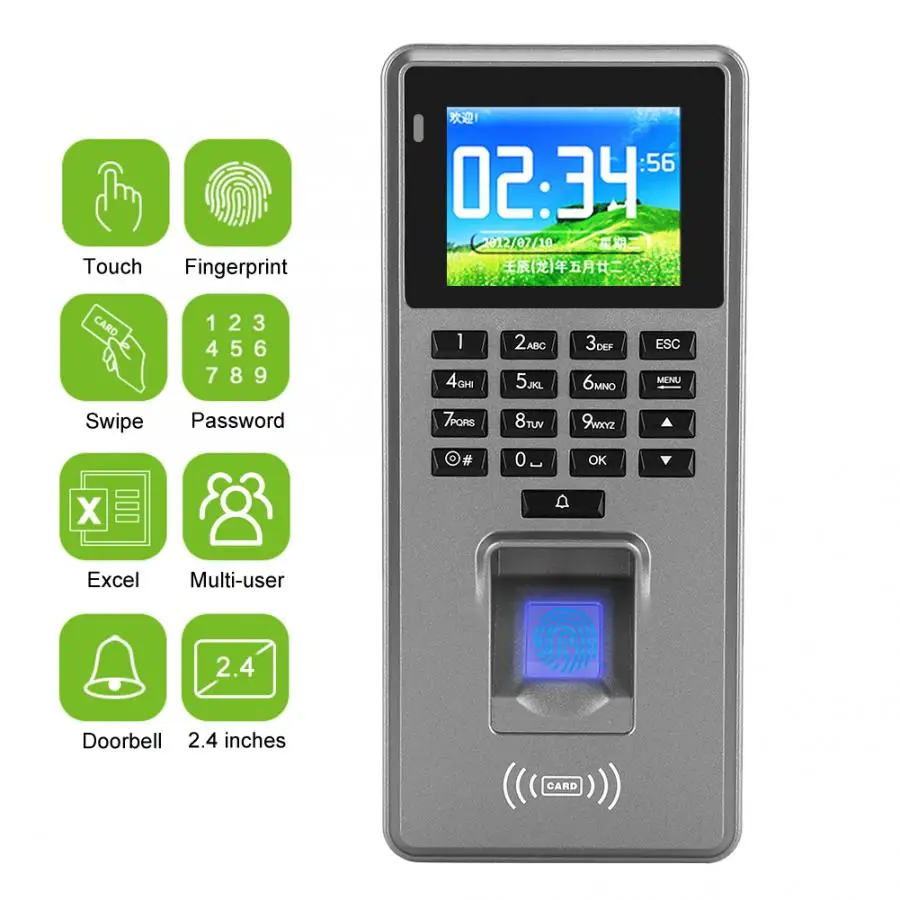 2.4in TFT Wiegand 26 отпечатков пальцев пароль 125 кГц RFID Контроль доступа посещаемость машина