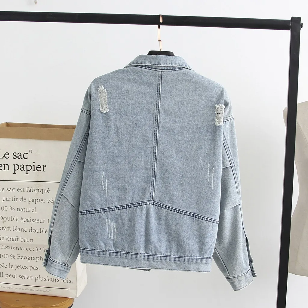 Женская свободная винтажная джинсовая куртка с длинными рукавами, короткая верхняя одежда, пальто