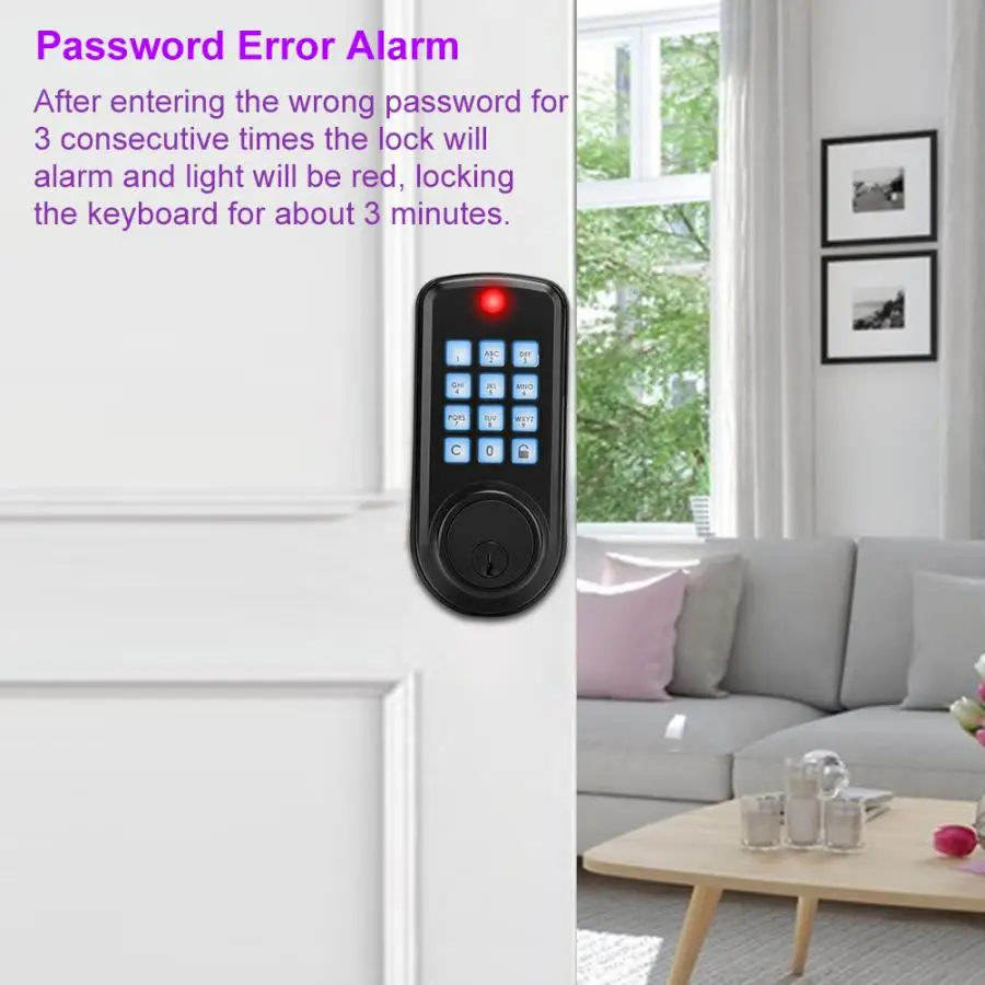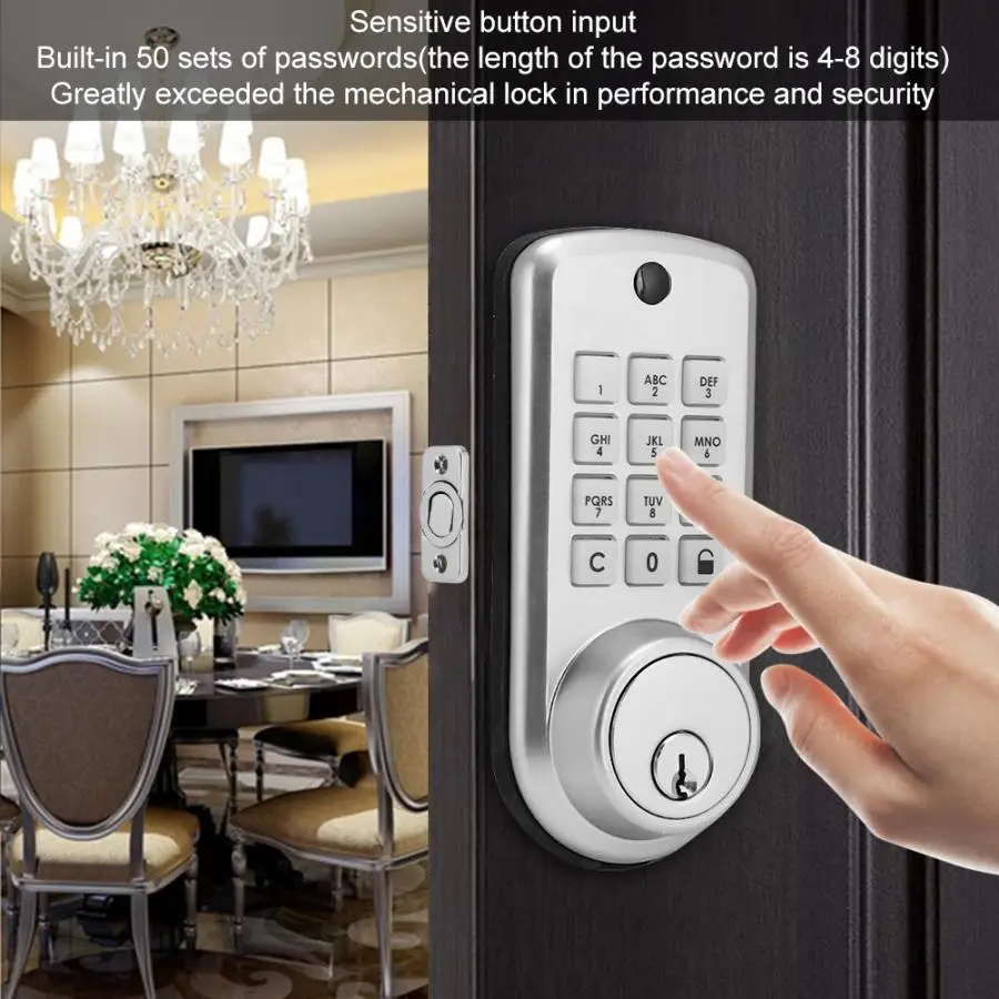 1. Уникальный дизайн с чувствительной кнопкой ввода и встроенный 50 наборов паролей (длина пароля 4-8 цифр), является универсальным, практичным и универсальным для большинства людей, не ограничиваясь возрастом пользователя. Его производительность и безопасность значительно превысили механический замок.
