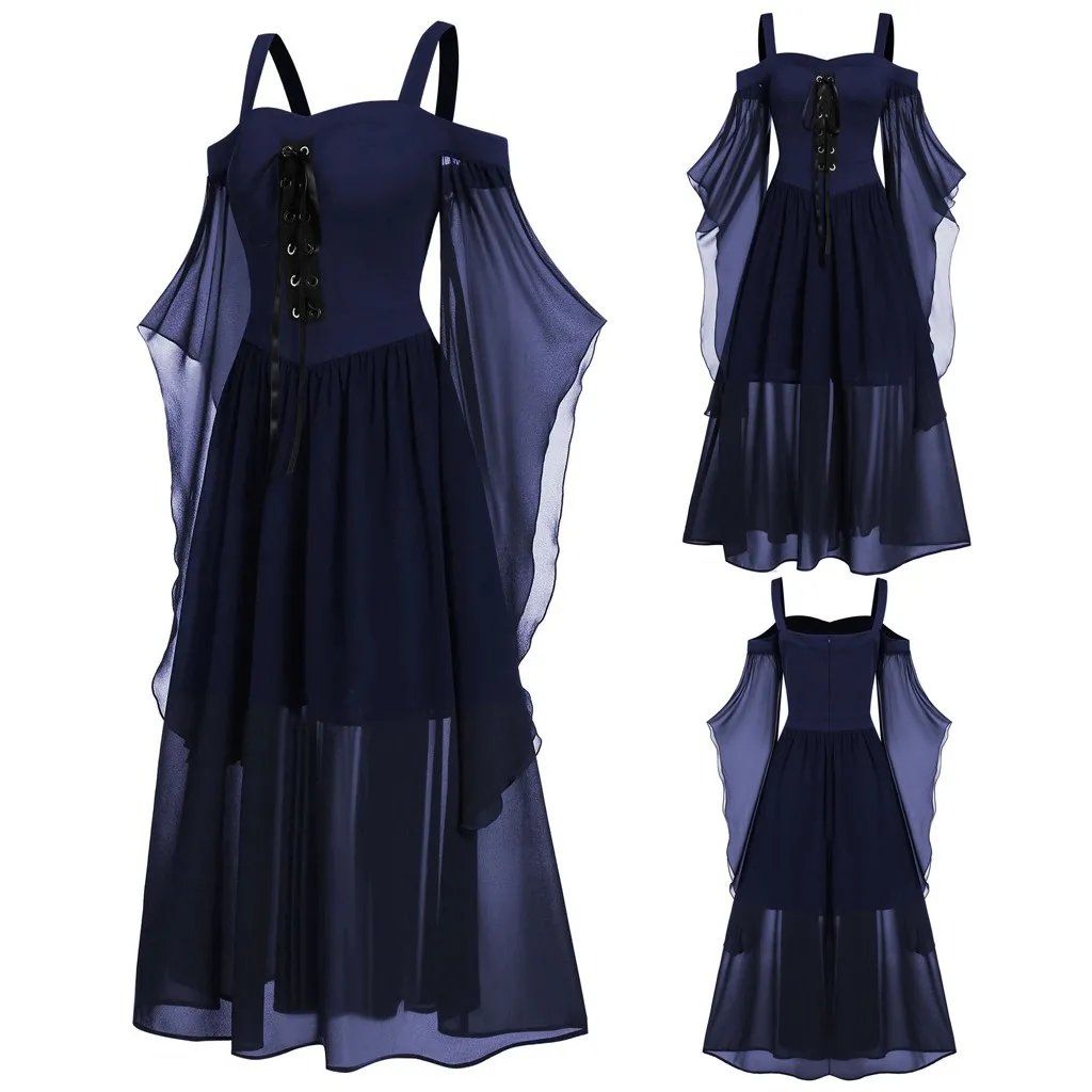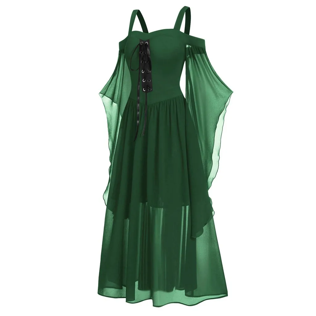 Womne размера плюс холодное плечо бабочка рукав кружева Хэллоуин платье
