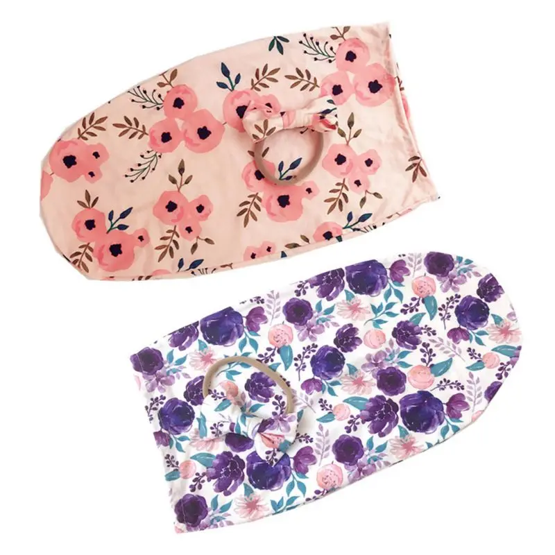 В комплект входит детское Пеленальное Одеяло с цветочным рисунком и соответствующая повязка на голову.