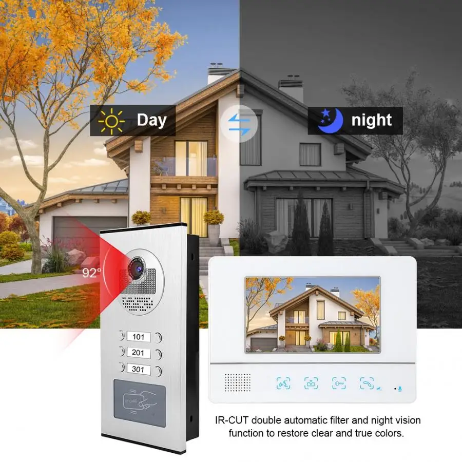 7 дюймов TFT 3 Монитора IR-CUT видеодомофон домашняя система доступа домофон с 100-240 В