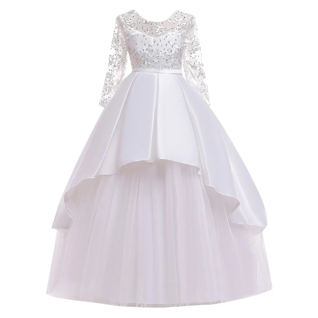 Платье для девочек Подростковая детская одежда вечерние кружевные свадебные платья принцессы для маленьких девочек длинное платье на выпускной костюм для подростков Описание продукта: Модный дизайн, 100% новый бренд, высокое качество! Материал: нейлон Рисунок:Тюль Воротник: О-образный вырез Длина рукава: длинный рукав Основной цвет: как показано на картинке Стиль: Модный Стильный и модный дизайн сделает вашего ребенка более привлекательным Прекрасно подходит для повседневной носки, на каждый день, вечерние или фотосессии, также у нас есть отличная идея для детского праздника подарки Он изготовлен из высококачественных материалов,Ощущение мягкости рук, никакого вреда для кожи вашего ребенка Возможны незначительные отклонения в 1-3 см из-за ручного измерения и небольшой разницы в цвете для различных настроек дисплея, Спасибо за понимание! 1 дюйм = 2,54 см Пожалуйста, обратите внимание: если ваш ребенок пухленький, мы рекомендуем выбрать больший размер, спасибо. Спасибо и хорошего дня! Посылка включает в себя:Платье-1 шт. Размеры таблицей: