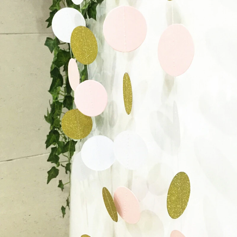 • Цвета: сверкающие золотистые, розовые, белые круги в одну гирлянду.