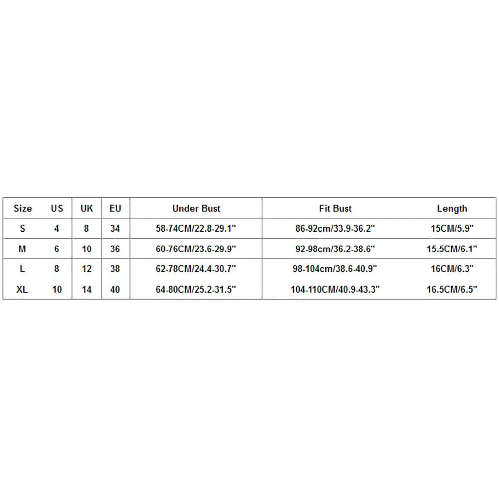 Размеры Свяжитесь с нами Великобритания ЕС Обхват под грудью Обхват груди Длина S 4 8 34 58-74 см/22,8-29,1" 86-92 см/33,9-36,2" 15 см/5,9" М 6 10 36 60-76 см/23,6-29,9" 92-98 см/36,2-38,6" 15,5 см/6,1" L 8 12 38 62-78 см/24,4-30,7" 98-104 см/38,6-40,9" 16 см/6,3" XL 10 14 40 Четырёхъядерный 64-разрядный процессор 80 см/25,2-31,5" 104-110 см/40,9-43,3" 16,5 см/6,5"