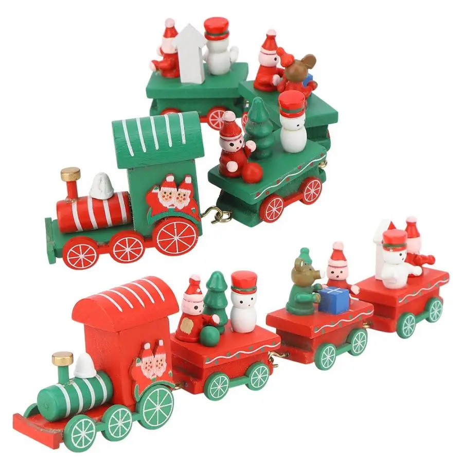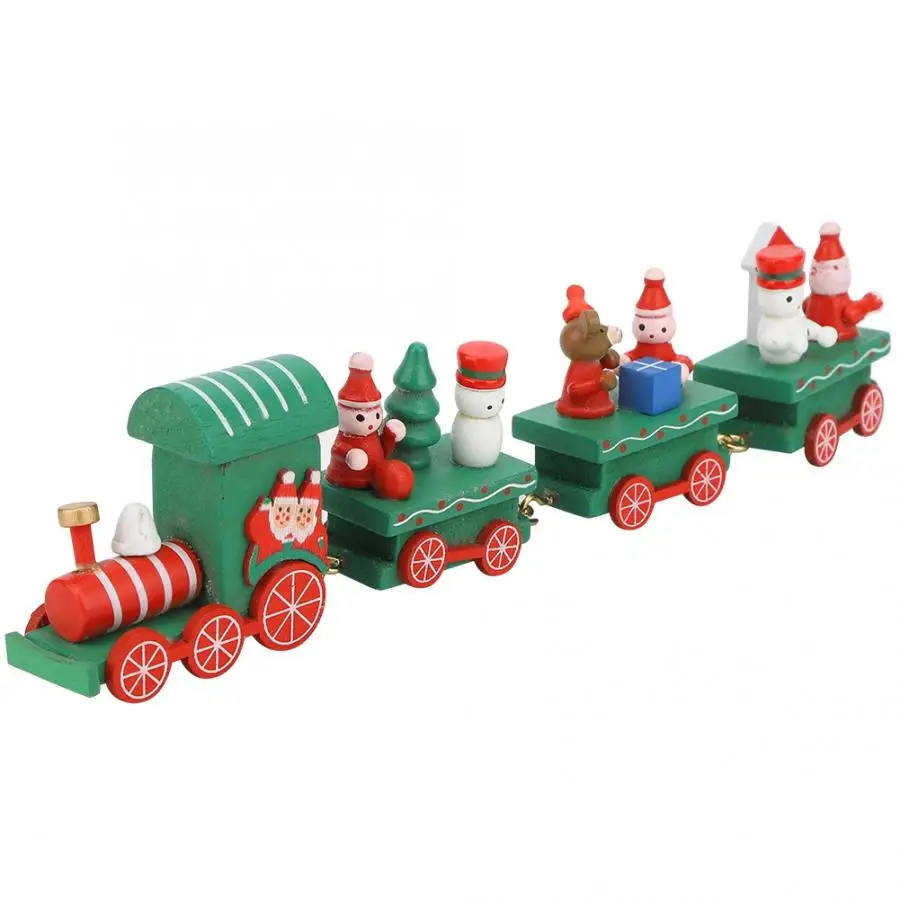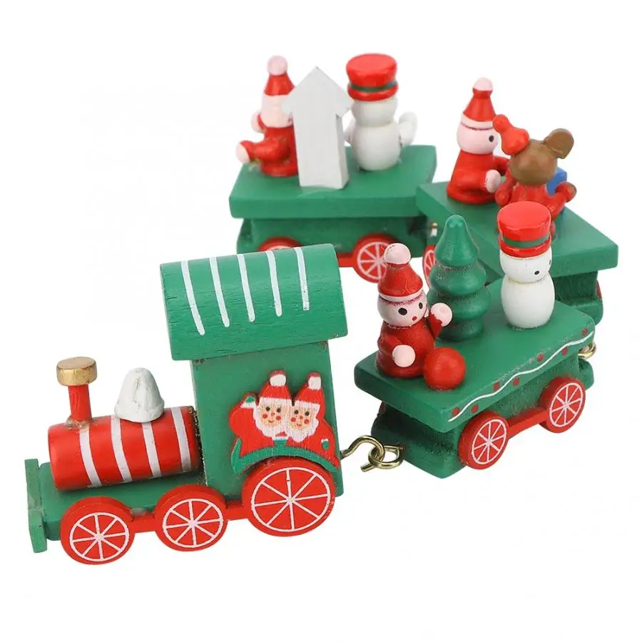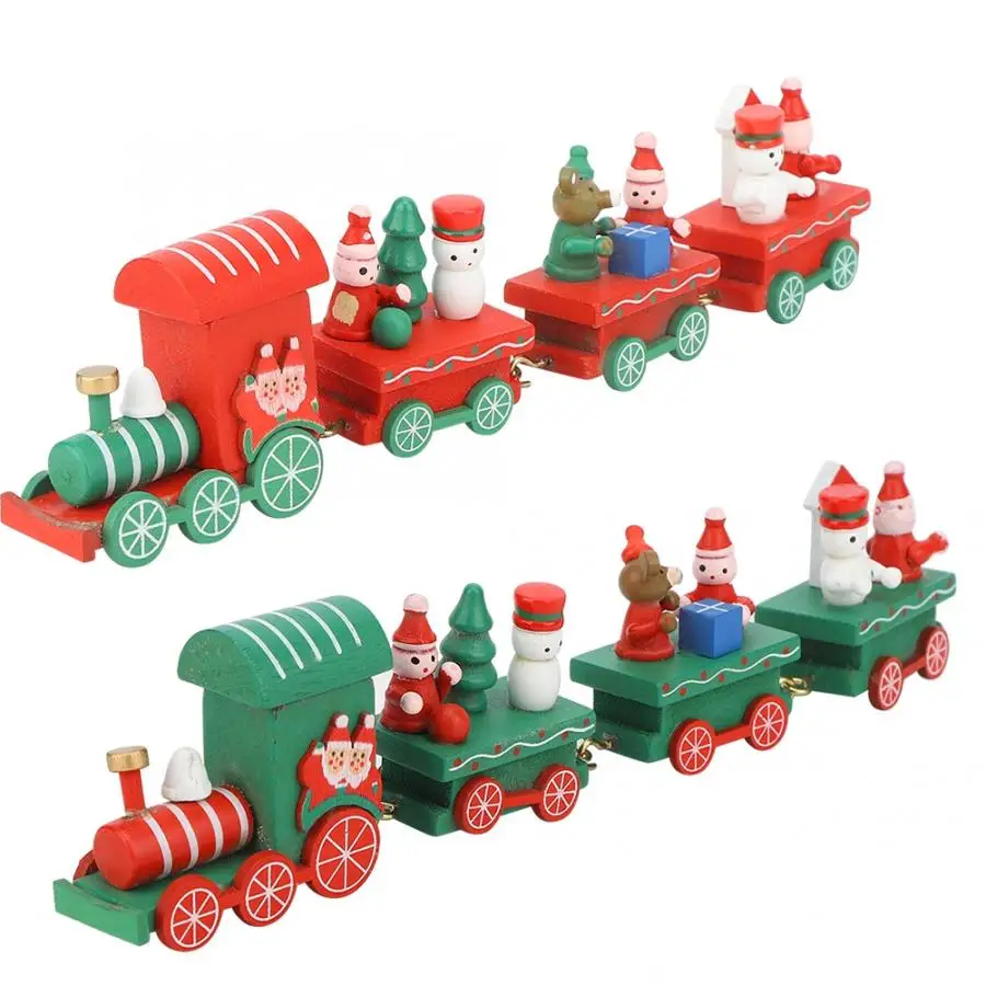 Отборная высококачественная древесина, безопасная и Нетоксичная, может быть использована легко. Дизайн формы живой, красивый, красивый и модный. Специальный подарок на Рождество. Состоит из двигателя и трех колясок с подарками и буквами. Он очень подходит для рождественских принадлежностей. Двигатель и коляска соединены латунные принадлежности, которые не могут быть разделены и прочны и долговечны. Этот маленький Рождественский поезд, тонкое мастерство, очень подходит для украшения Рождественского рабочего стола, так что ваш дом полон сильной праздничной атмосферой.