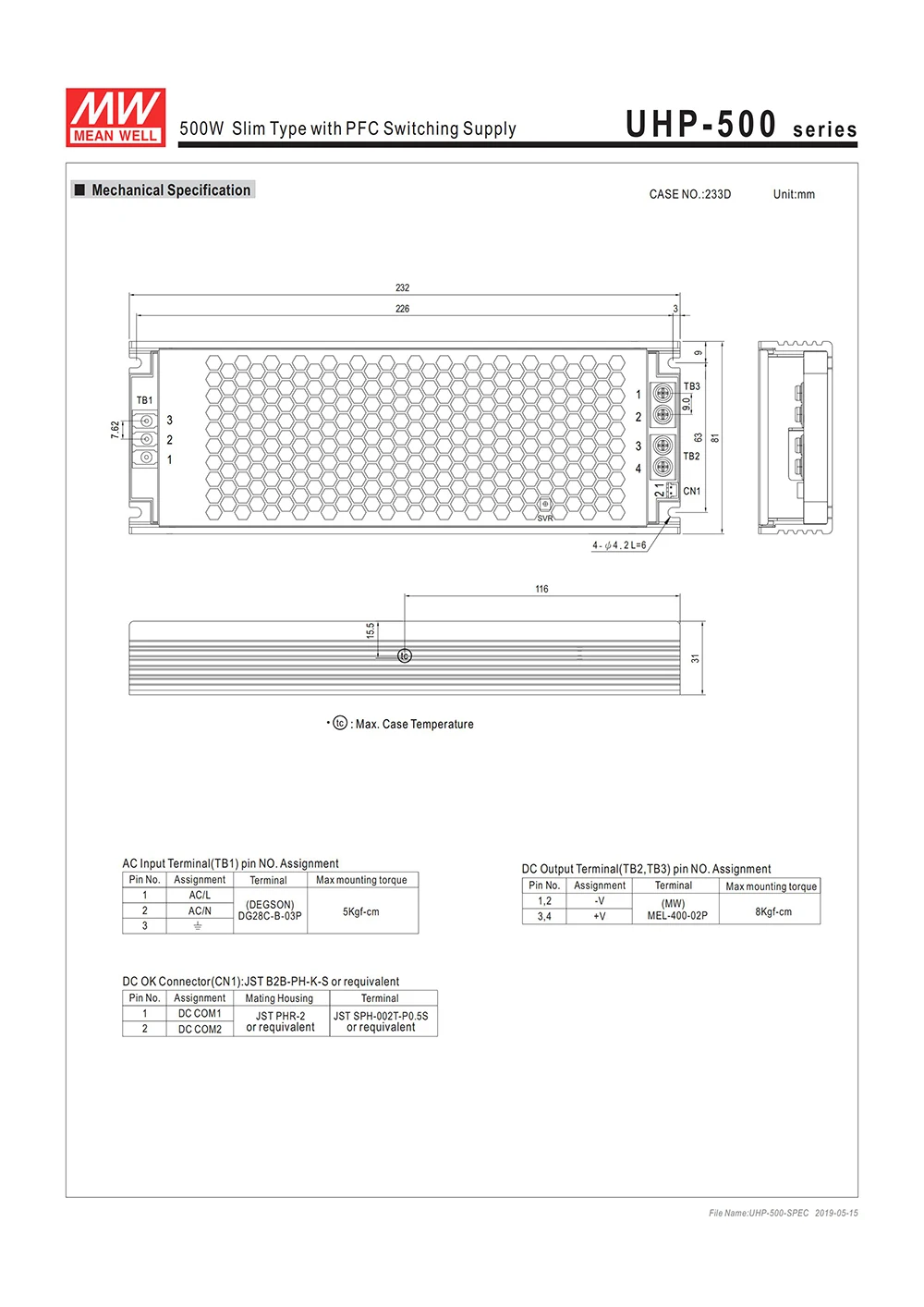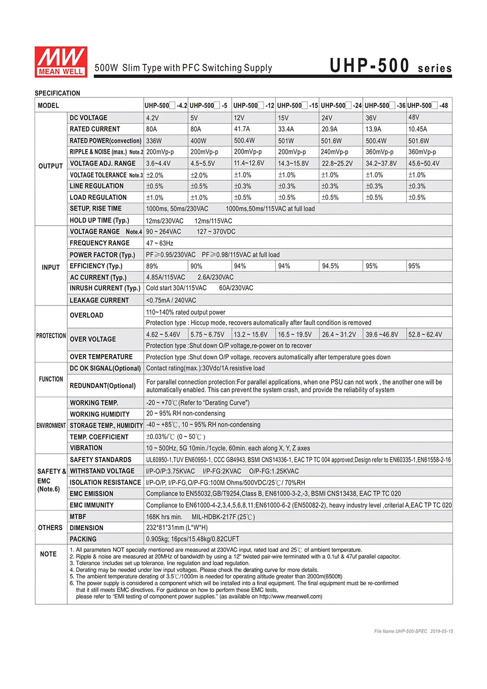 Slim and low profile(31mm) Fanless design, 500W convection Withstand 300VAC surge input for 5 seconds Built-in active PFC function 150% peak load capability(100ms) -20~+70 ℃ working temperature Protections: Short circuit/Overload/Over Voltage/Over temperature Operating altitude up to 5000 meter LED indicator for power on Built-in DC OK active signal and Redundant function 3 year warranty