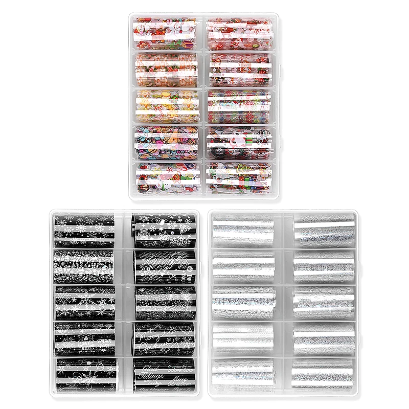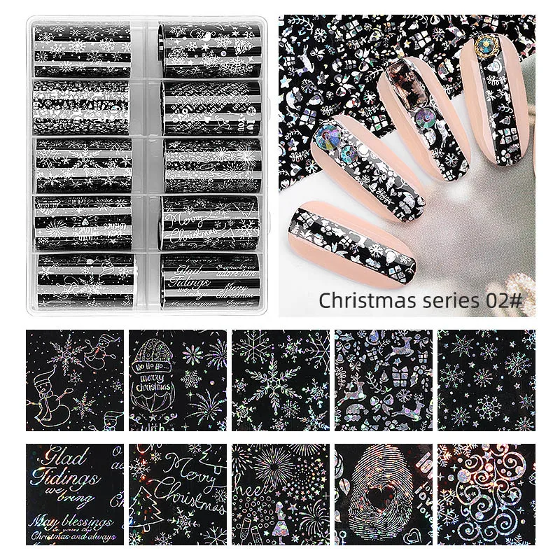 Переводная бумага для ногтей в виде звезды, Набор рождественских наклеек для ногтей, Волшебная Снежинка, 10 смешанных цветов