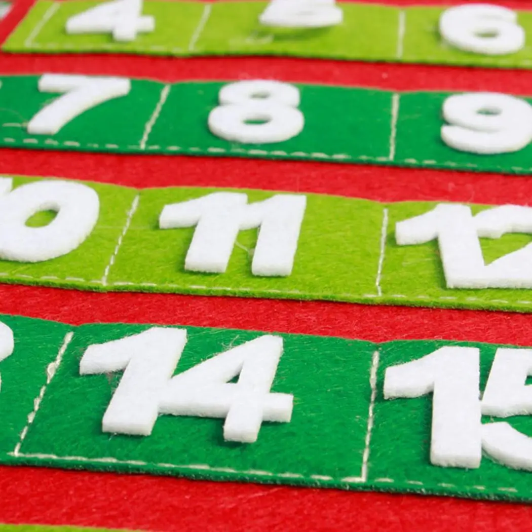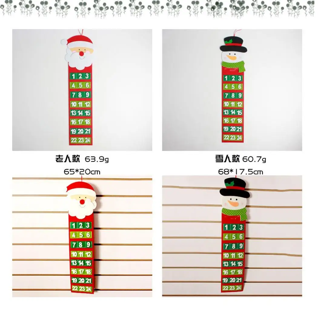 Материал: Нетканая ткань Цвета: красного и зеленого цвета 2 типа: снеговик, Санта-Клаус Размер снеговика: 68x17,5 см/26,8x6,9 дюймов Размер Санта-Клауса: 65x20 см/25,6x7,9 дюйма Узор: снеговик, Санта-Клаус Повод: Рождество Тип товара: Рождественский календарь обратного отсчета Количество: 1 шт. Особенности: Рождественский Адвент-календарь из ткани с 24 индивидуальными нумерованными карманами. Карманы с угощениями для ваших детей, чтобы наслаждаться, как они подсчитывают до Рождества. Можно повторно использовать год за год, также подходит как украшение. Содержание упаковки: 1 Рождественский календарь обратного отсчета Примечание: Из-за разницы между различными мониторами изображение может не отражать фактический цвет. 1 см = 0,3937 дюйма