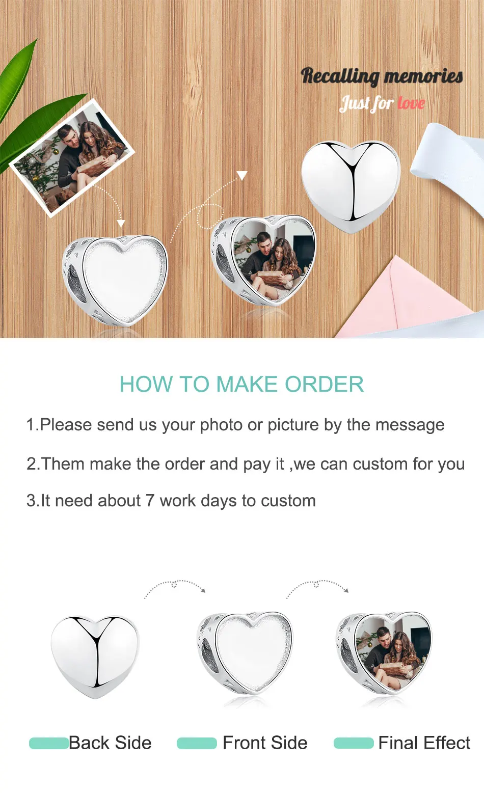1. Обслуживание: Мы предоставляем бесплатные пользовательские фото и гравировка имя службы. 2. Метод: вы можете просто отправить фотографию и указать имя, которое вы хотите нам непосредственно в сообщении. 3. Время доставки: заказное очарование должно быть настроено и нужно около 5- 10 дней, чтобы произвести, надеюсь, что мой ценный клиент может понять. Пожалуйста, не волнуйтесь, когда очарование закончится, мы отправим быстрее. 4. Если у вас есть какие-либо вопросы, пожалуйста, свяжитесь с нами, мы будем рады решить проблемы для вас.