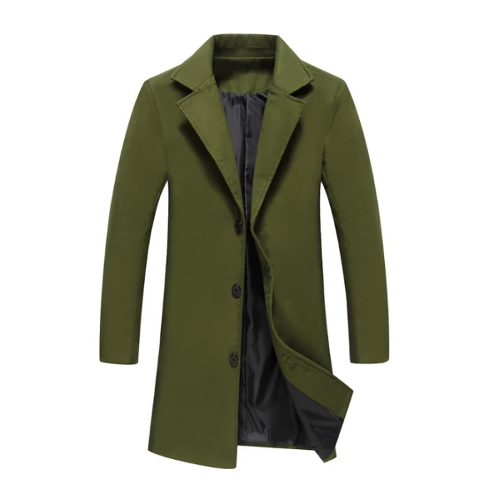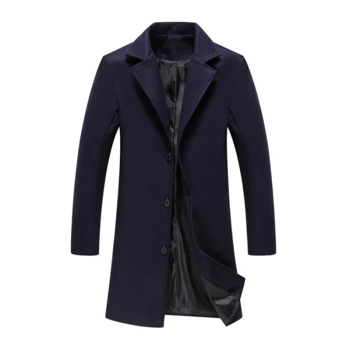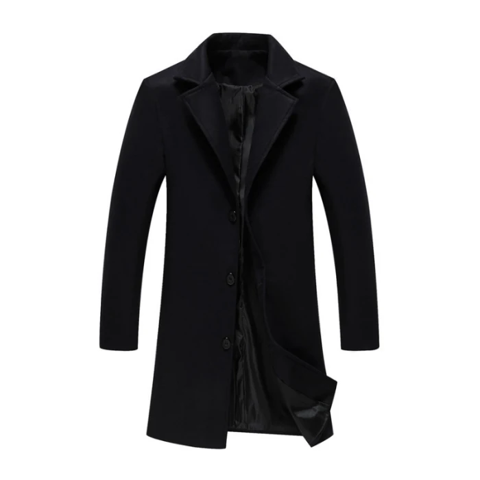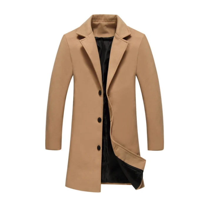 Тип одежды: мужское осеннее шерстяное пальто с отложным воротником на трех пуговицах, однобортное длинное пальто