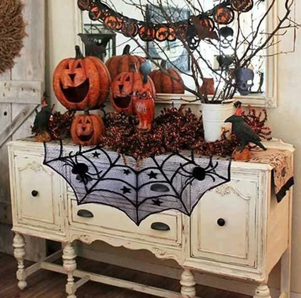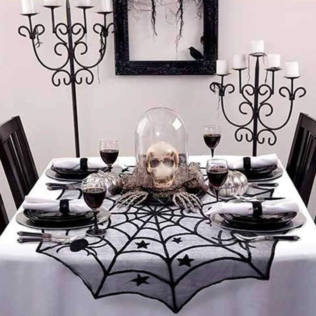 Скатерть с паутиной Черная кружевная летучая мышь паук вечерние занавески для декора стола