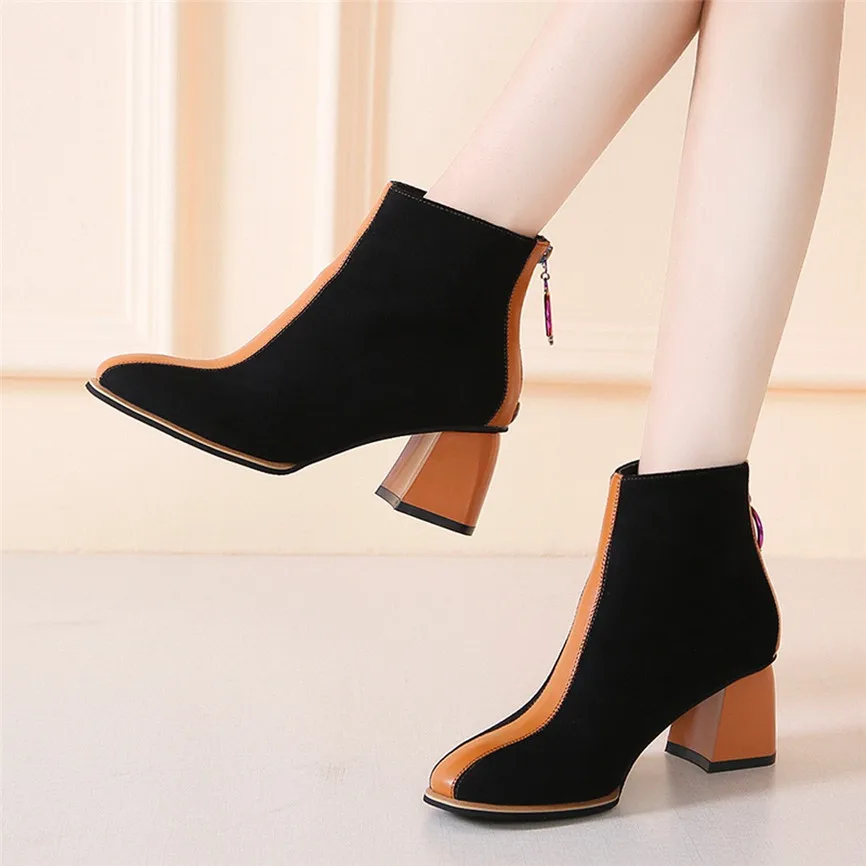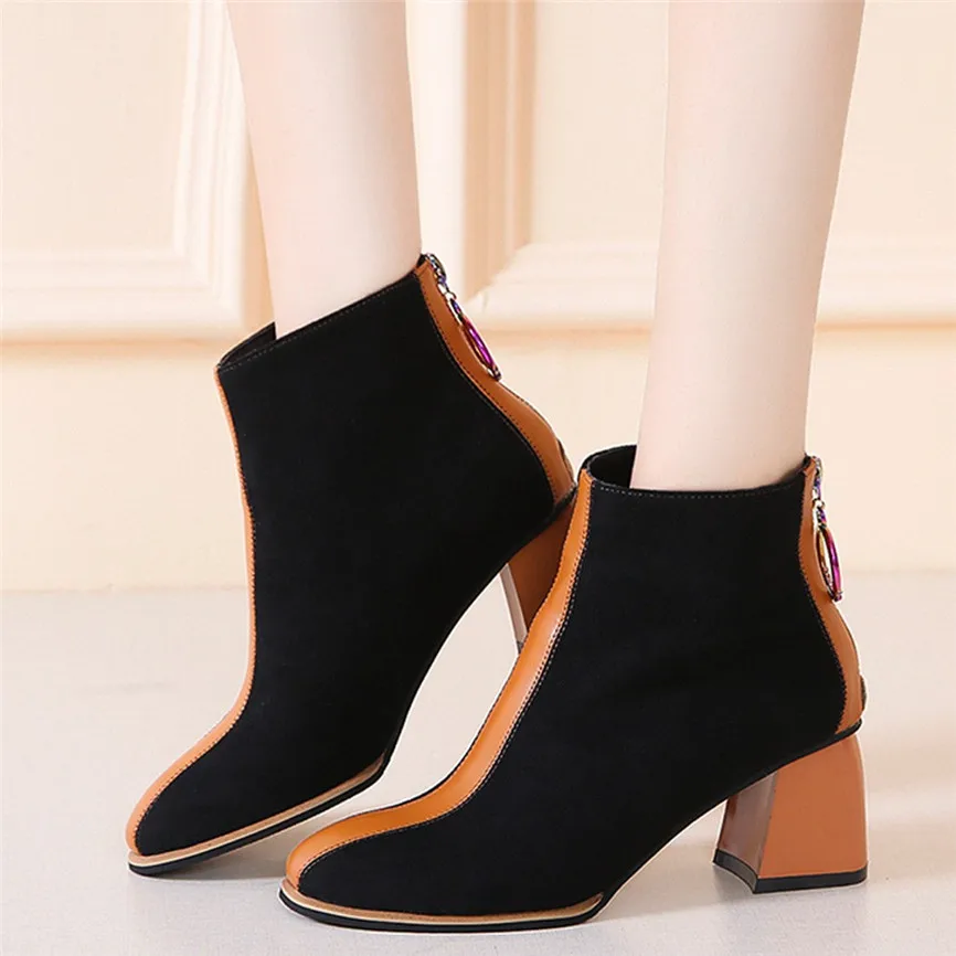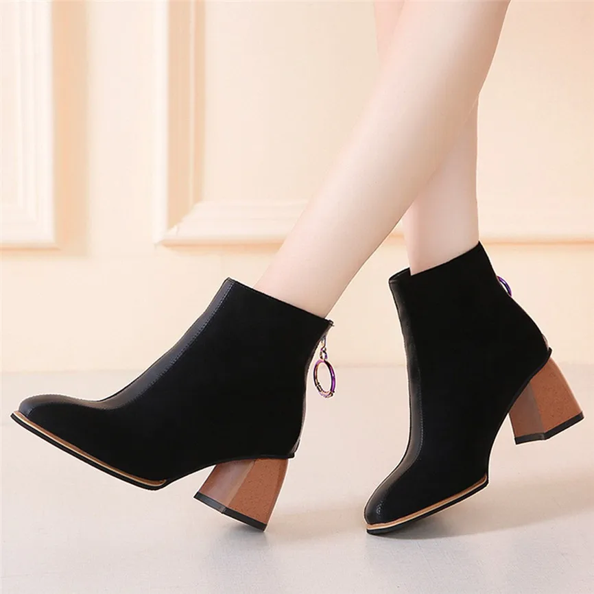 Ботильоны; сезон осень-зима; Ботинки martin для женщин; коллекция 2019 года; модные ботинки из флока; женские ботинки с острым носком; Высококачественная теплая обувь из искусственной кожи