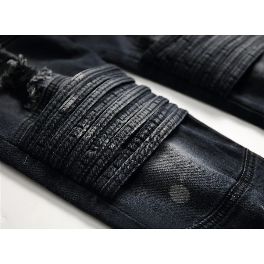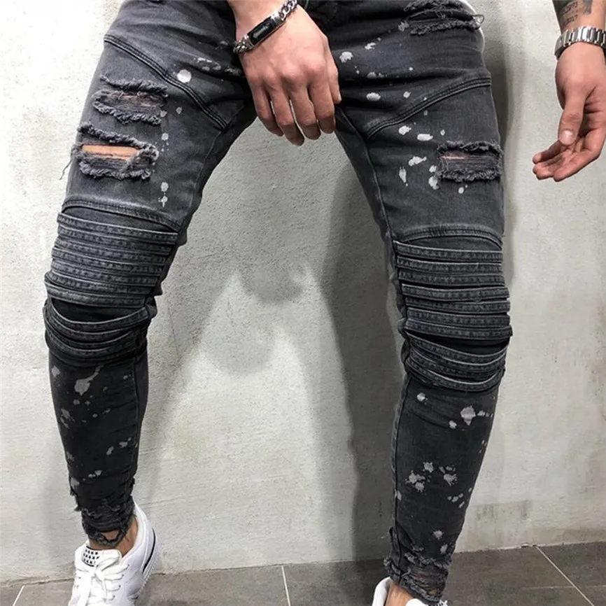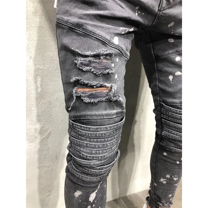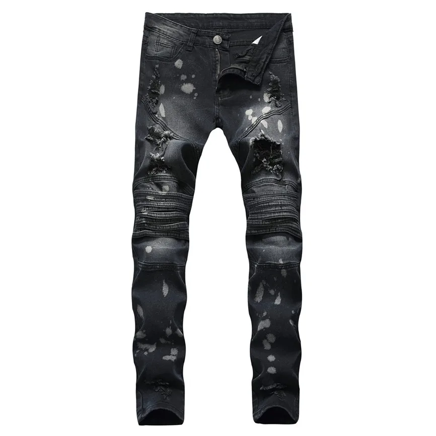 Мужские модные повседневные Узкие однотонные длинные джинсы с карманами на молнии