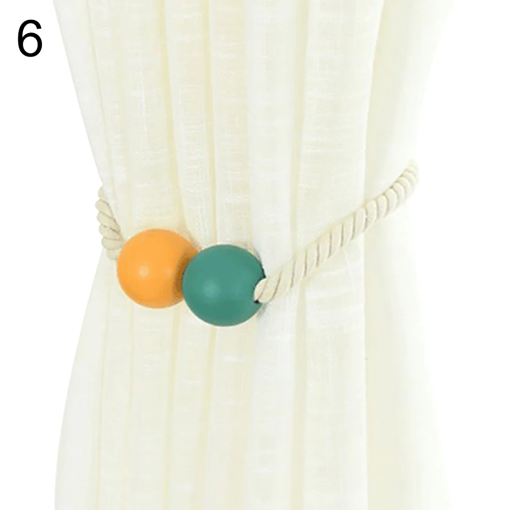 Простой и стильный дизайн штор из веревок и деревянных бусин.
